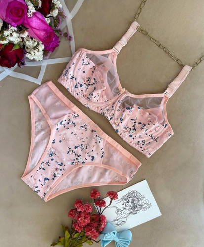 ست لباس زیر زنانه فنردار پانیذ مدل 9046 رنگ گلبهی