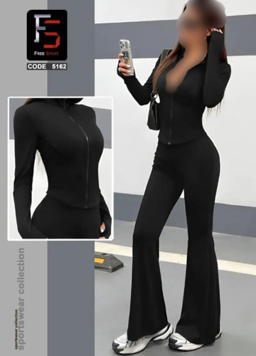 ست ورزشی زنانه سویشرت تمام زیپ فینگردار و شلوار بوتکات