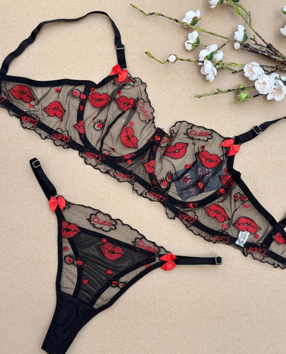 ست لباس زیر زنانه تورگاز هانیس طرح لب