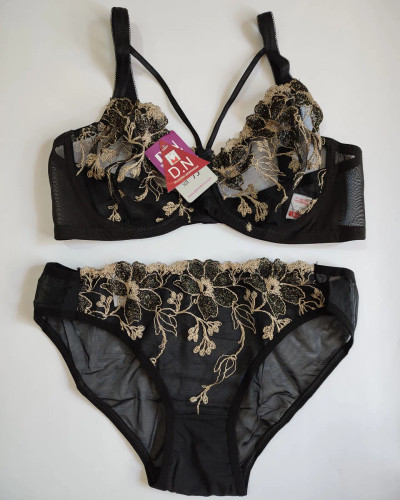 ست لباس زیر زنانه فنردار توری گلدوزی برند میسا رنگ مشکی