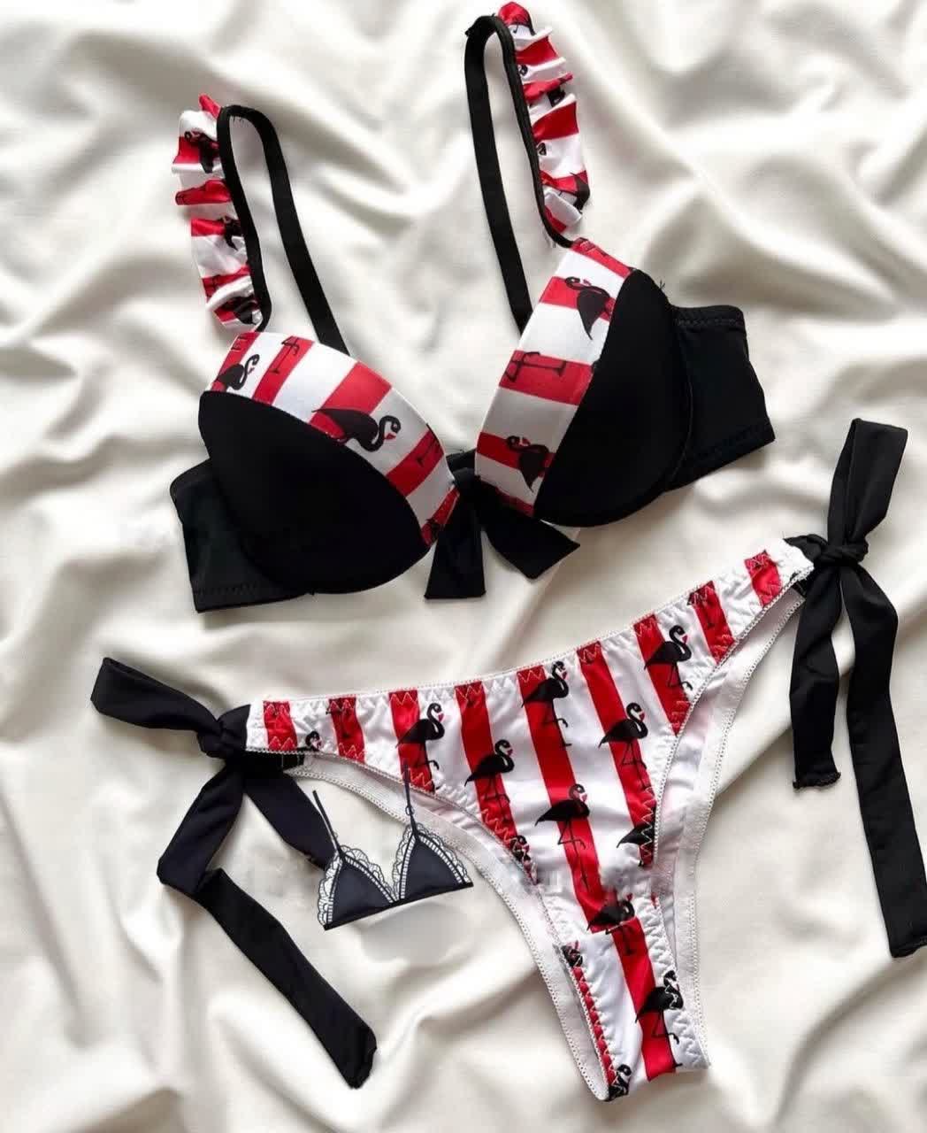 ست لباس زیر زنانه اسفنجی گره ای طرح فلامینگو