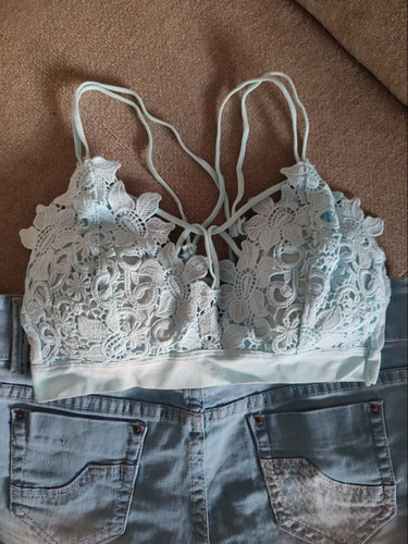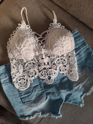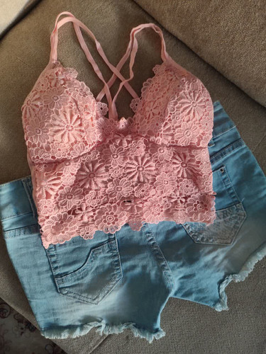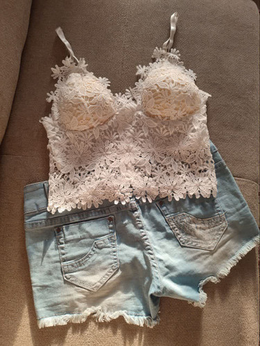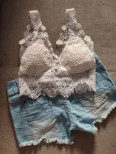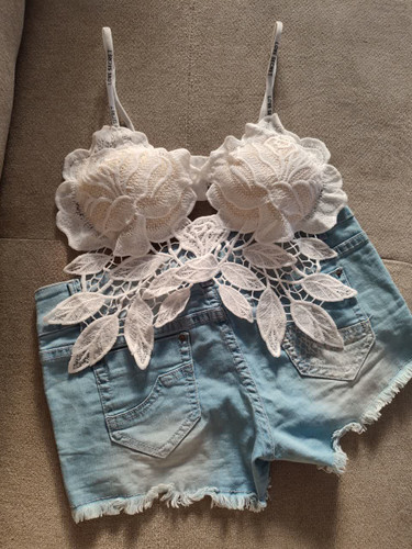 ست نیمتنه و شورت دانتل هارنس دار رنگ آبی