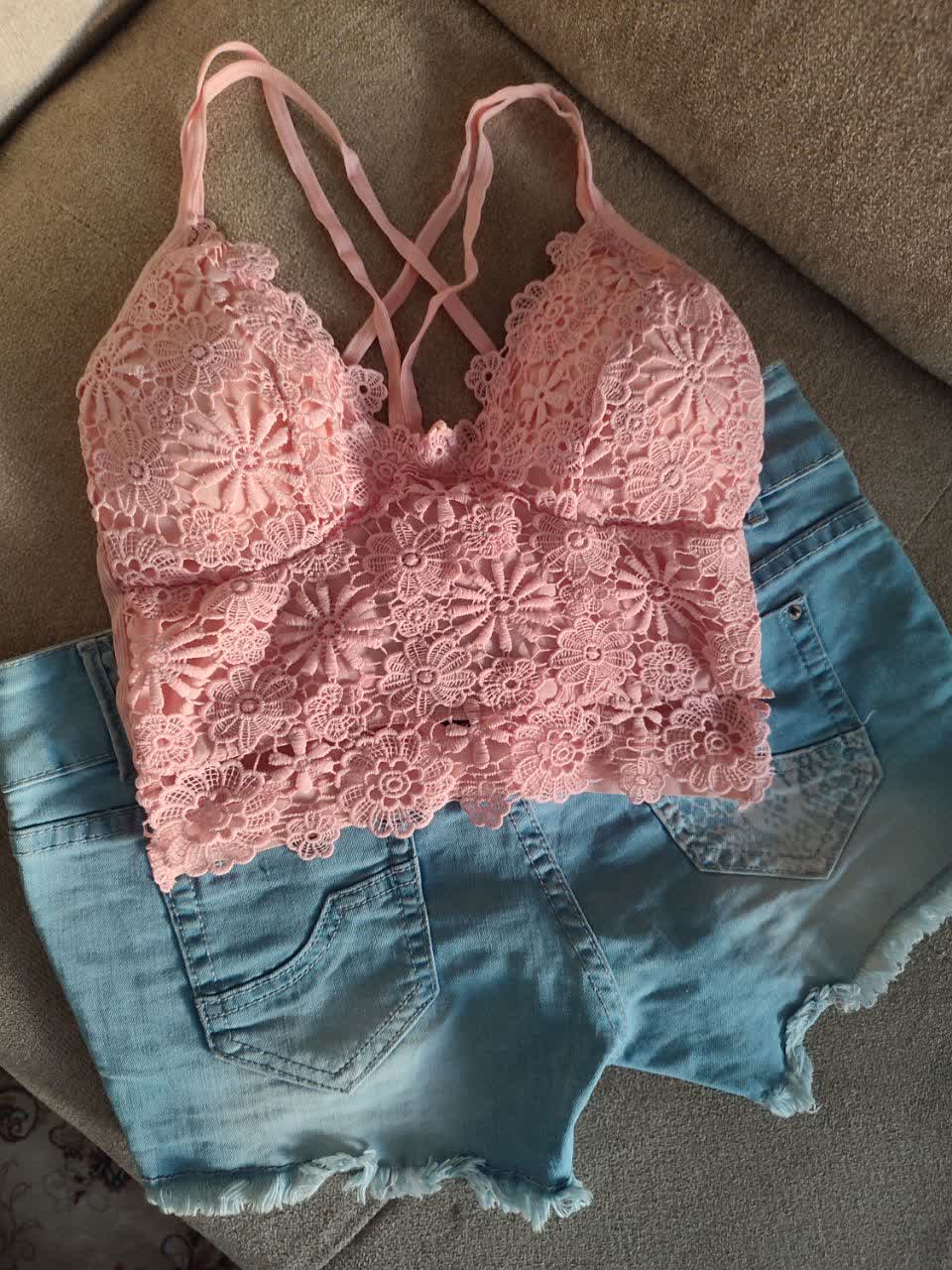 ست نیمتنه و شورت دانتل هارنس دار رنگ آبی