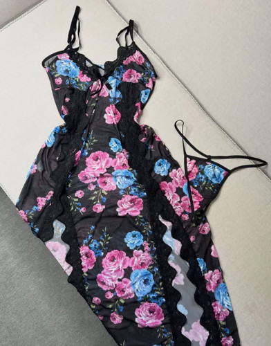 پیراهن خواب فنردار حریر گلدار