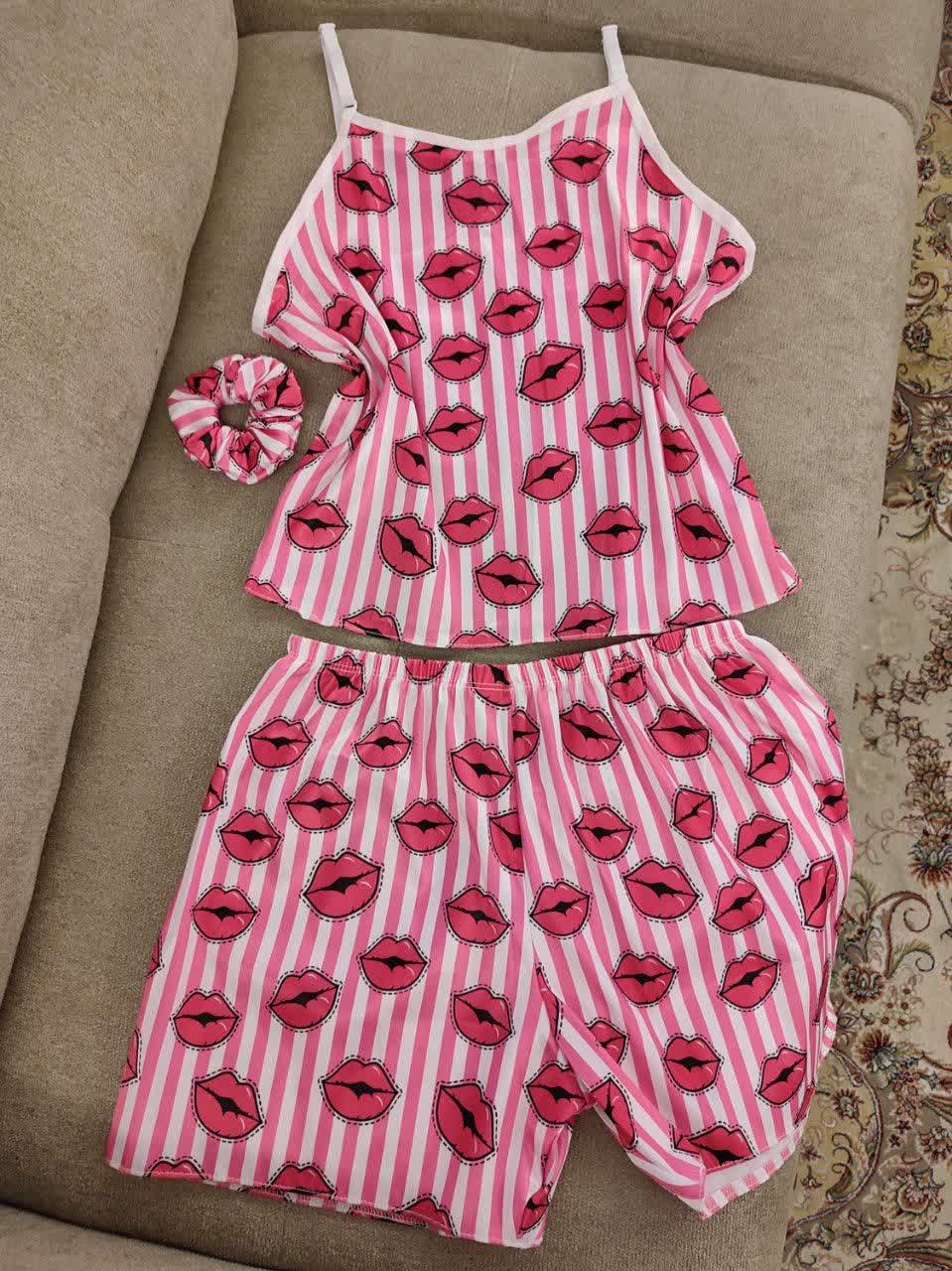 تاپ و شورت زنانه کبریتی مدل لب توری رنگ صورتی