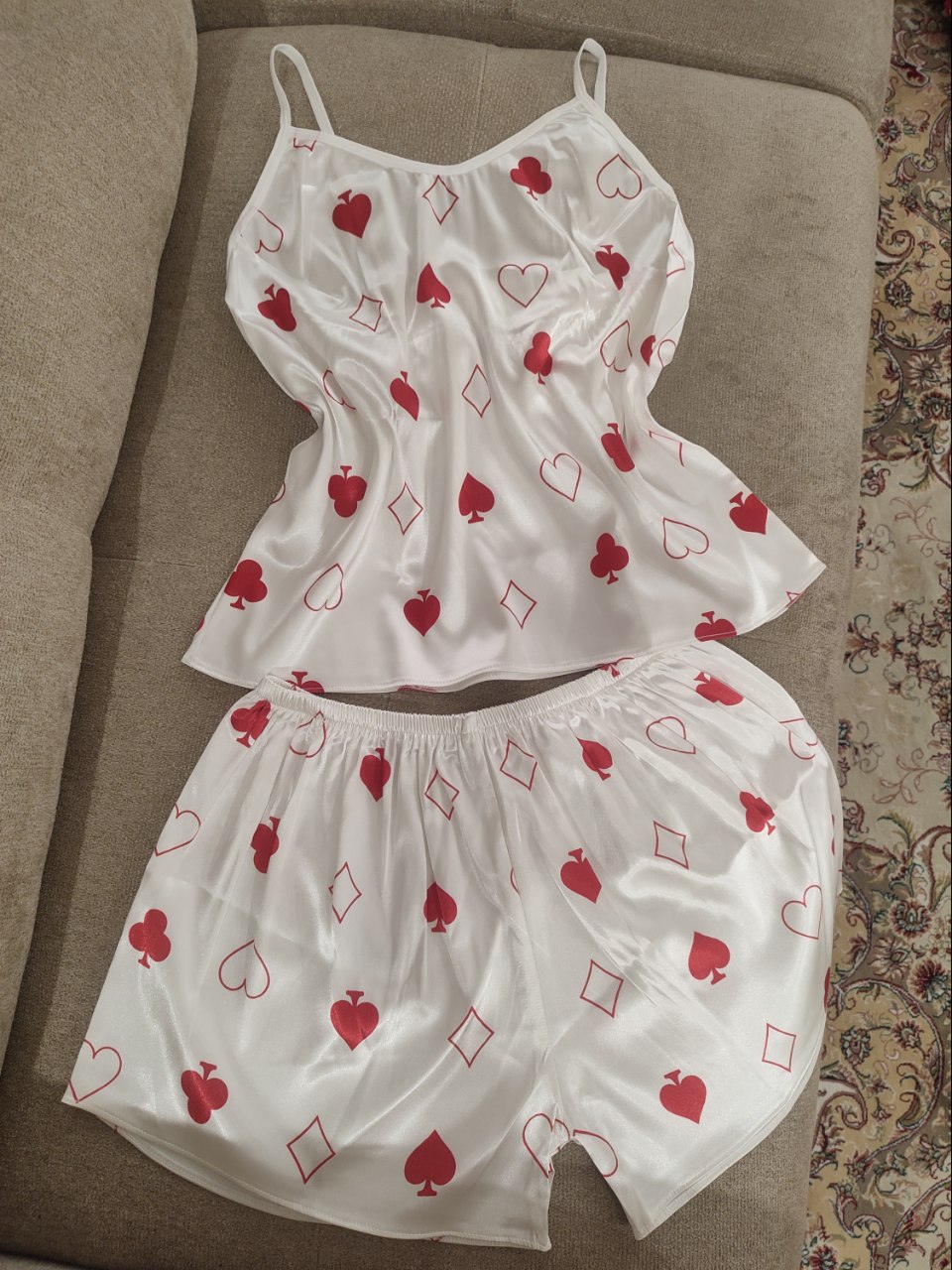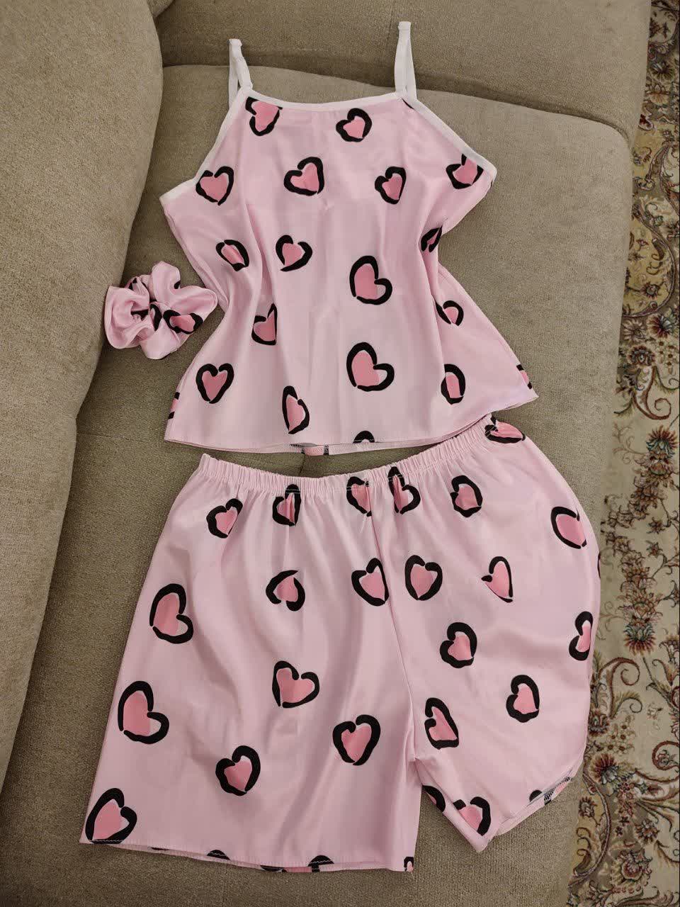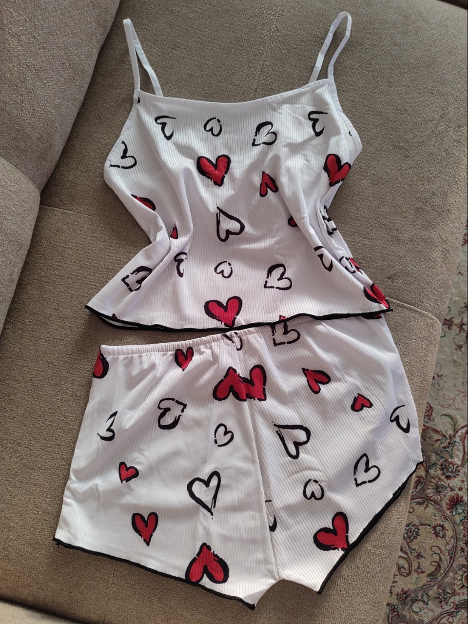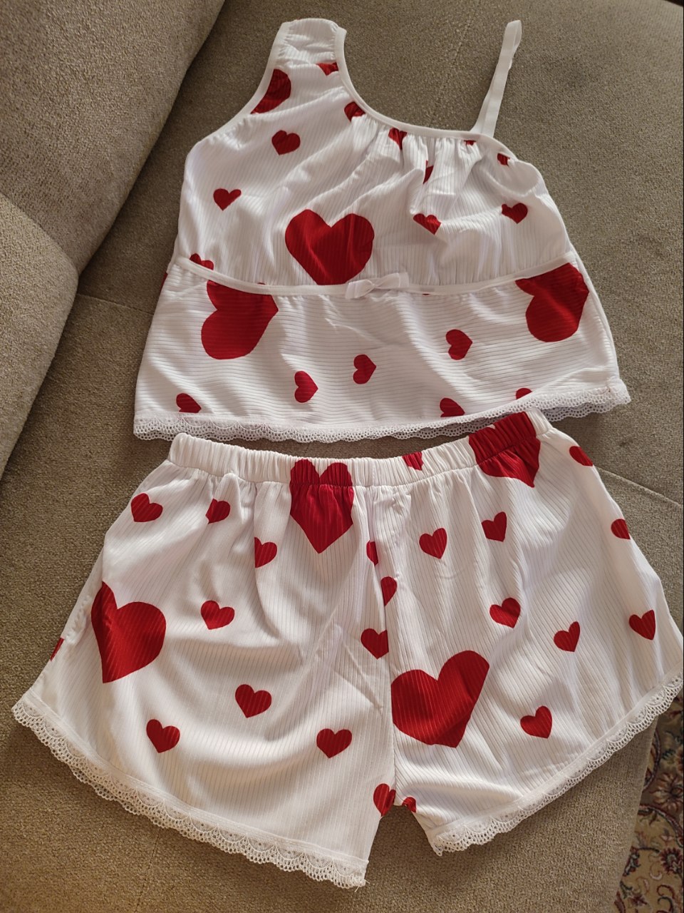 تاپ و شورت کبریتی یقه رومی طرح قلب قرمز