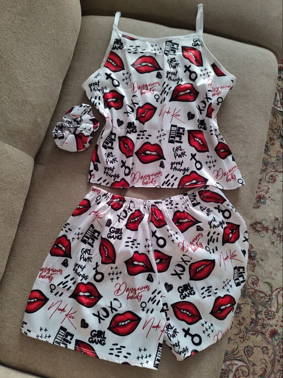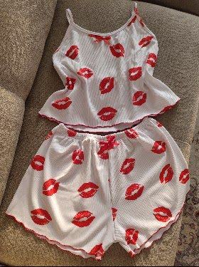 تاپ و شورت زنانه کبریتی مدل لب توری
