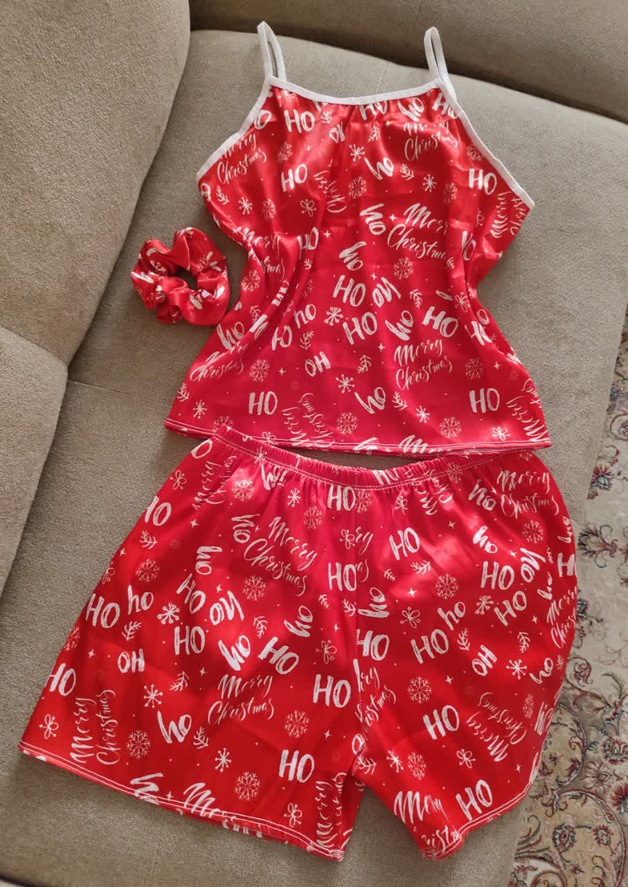 تاپ و شورت ساتن همراه اسکرانچی