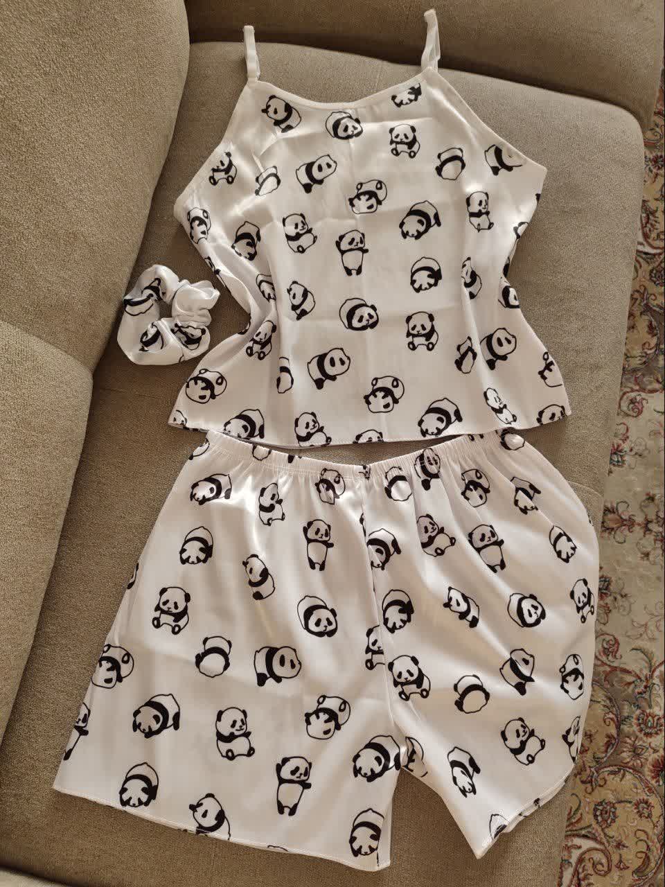 تاپ شورت ساتن همراه اسکرانچی طرح گاوی