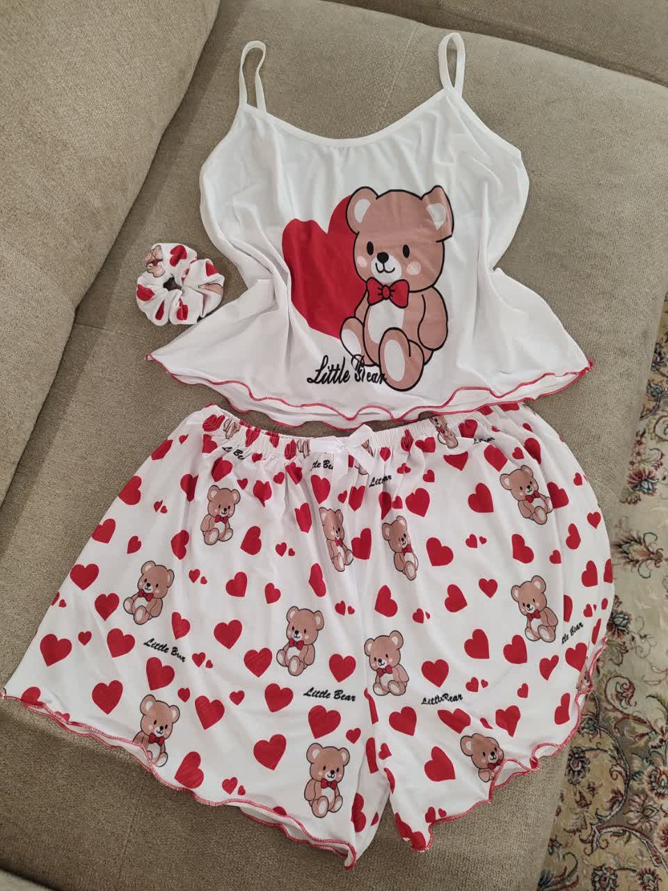 تاپ و شورت طرح تدی همراه اسکرانچی