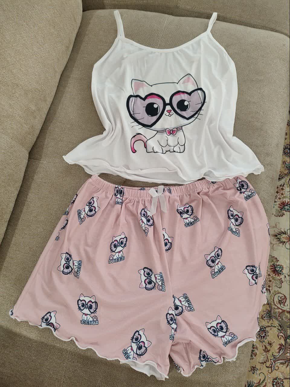 تاپ شورت زنانه ساتن بهار طرح عروسکی