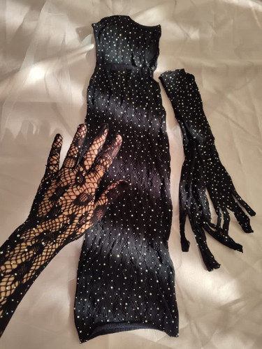 لباس خواب زنانه تونیک زنبوری نگین دار همراه دستکش