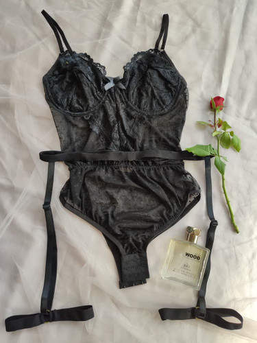 بادی زنانه فنردار فانتزی دانتل هارنس دار فاق باز شو رنگ مشکی