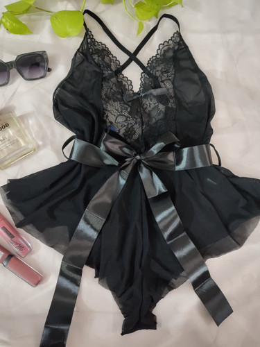 بادی فانتزی زنانه فنردار توری پشت ضربدری فاق بازشو