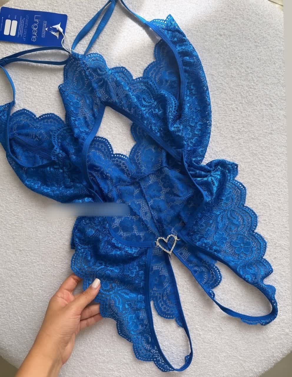 بادی زنانه ویتاریتا مدل فاق باز طرح قلبی رنگ آبی کاربنی