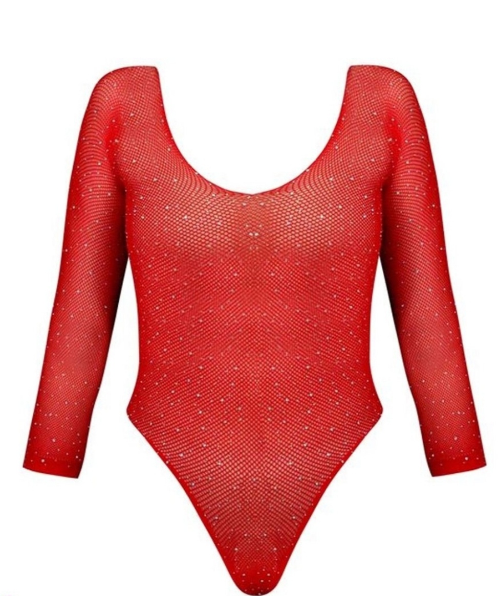 بادی (فیشنت) فانتزی زنانه نگین دار رنگ قرمز