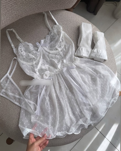 لباس خواب بادی دامنی همراه جوراب بالای زانو رنگ سفید