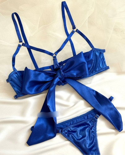 ست فانتزی کاپ بازشو پاپیونی همراه ران بند رنگ آبی کاربنی