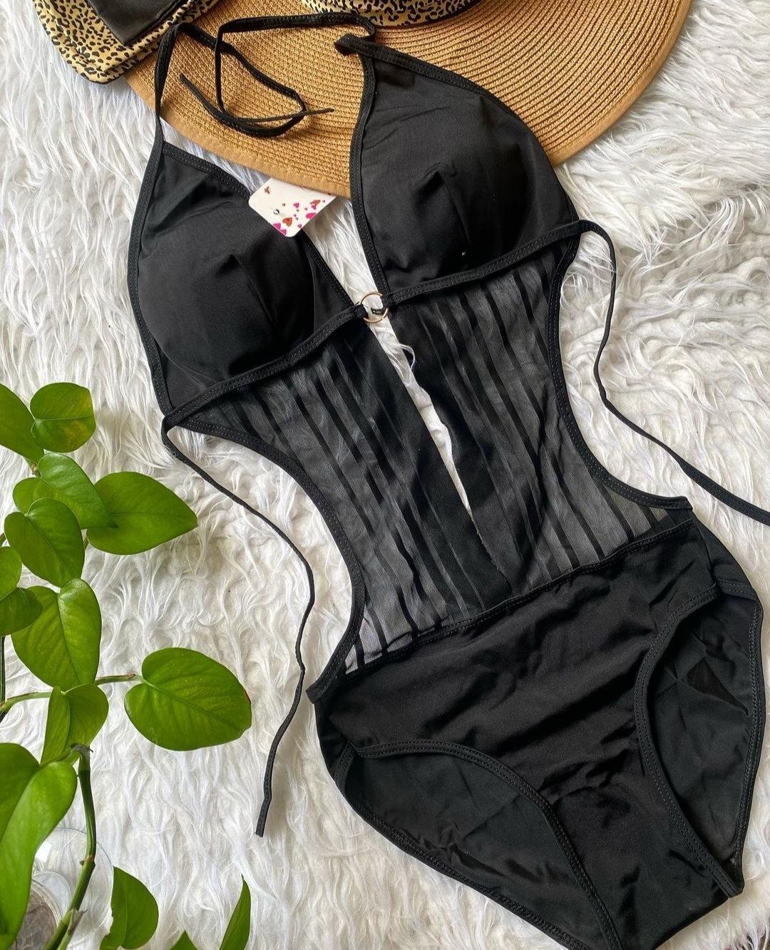 مایو زنانه کاپدار اسلیپ پلنگی جلو ضربدری