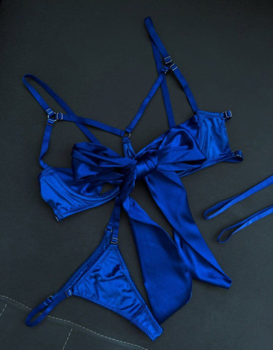 ست فانتزی کاپ بازشو پاپیونی همراه ران بند رنگ آبی کاربنی