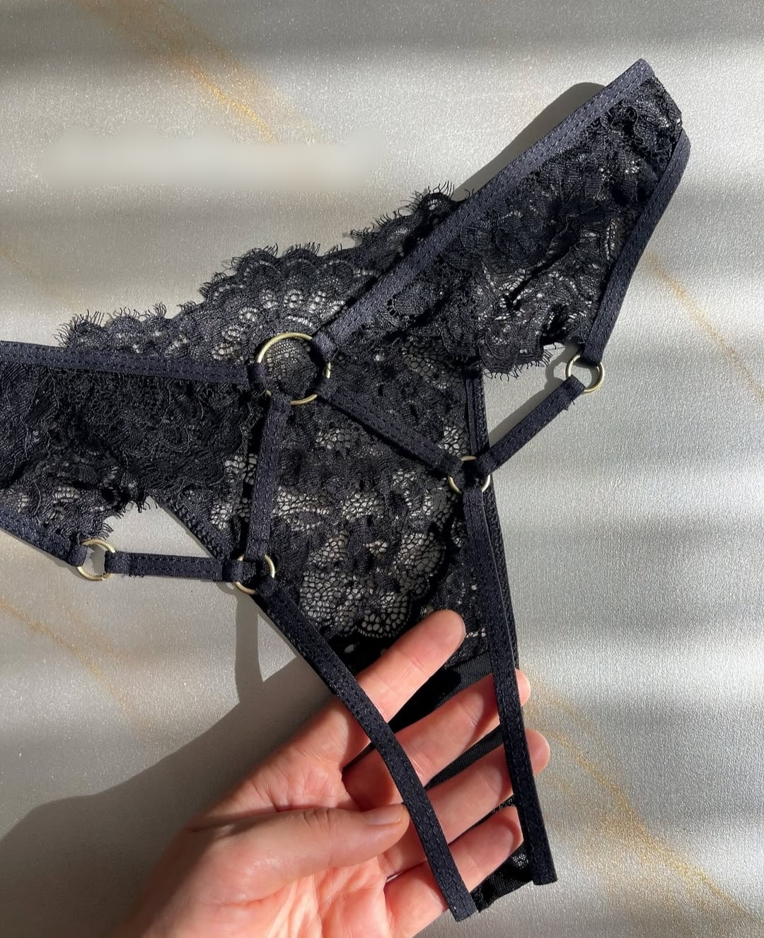 شورت فانتزی زنانه دانتل بند زنجیری فاق باز رنگ مشکی
