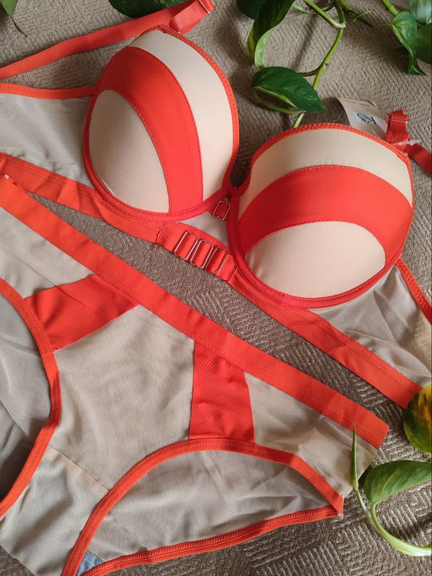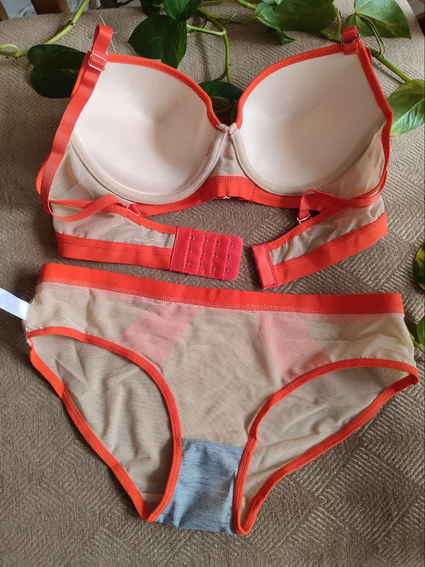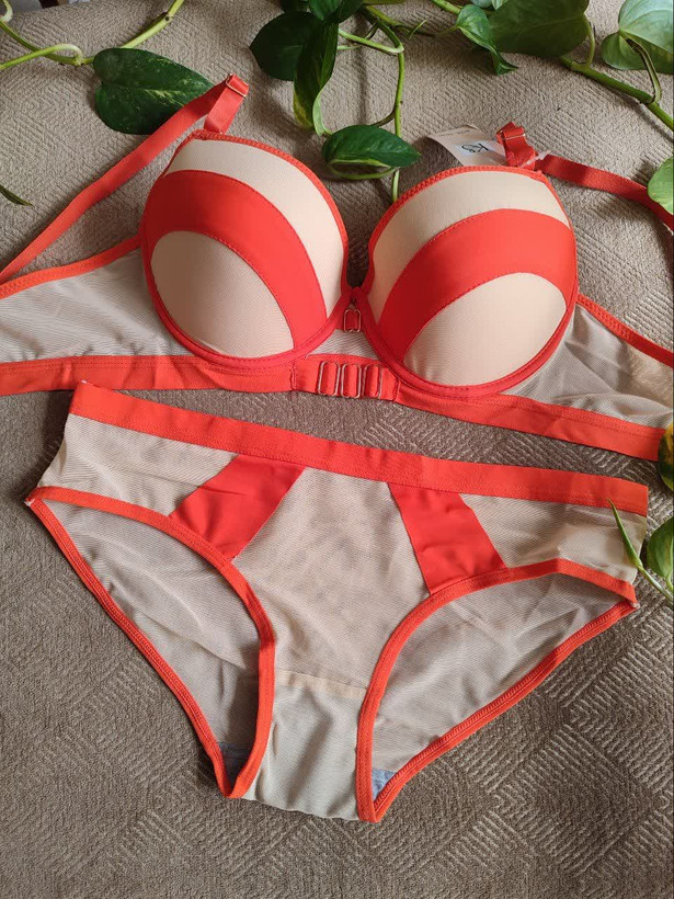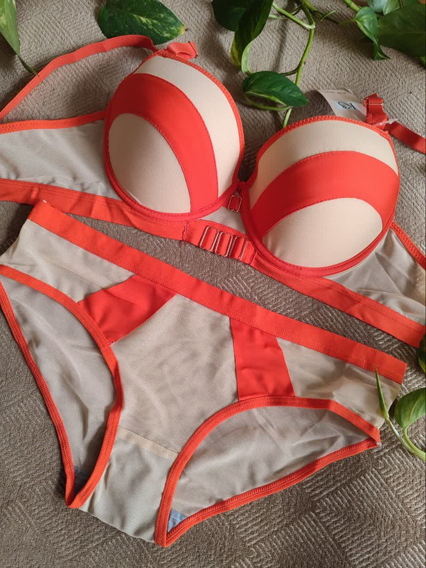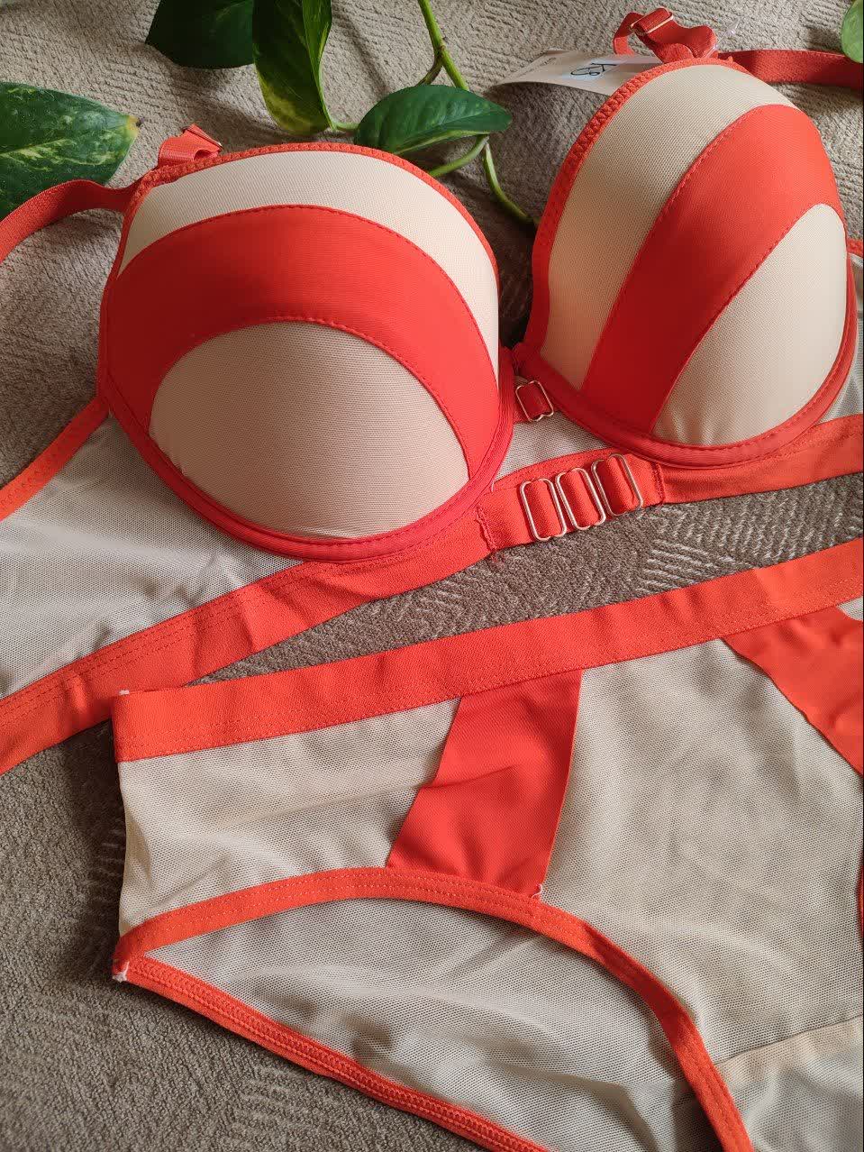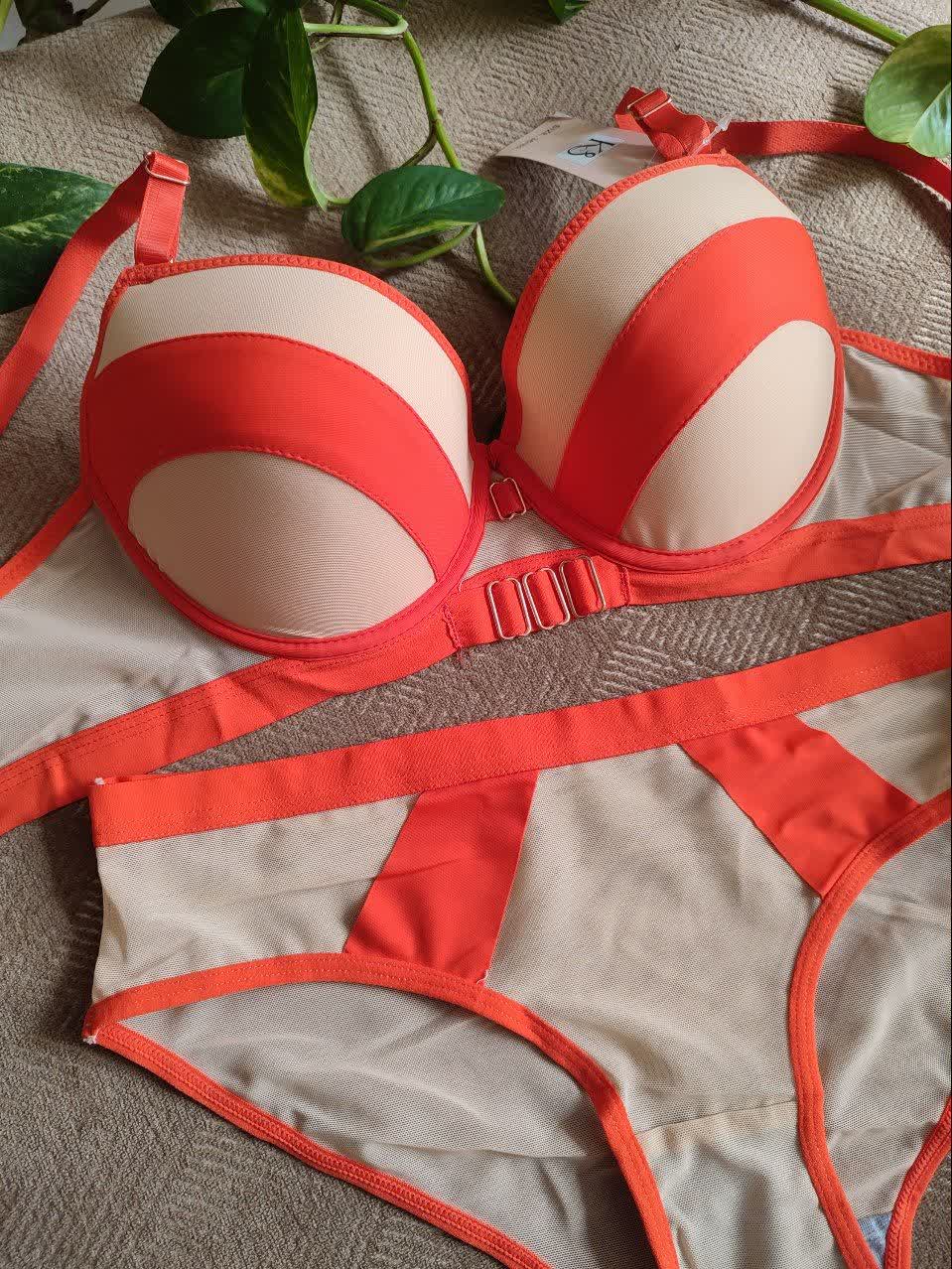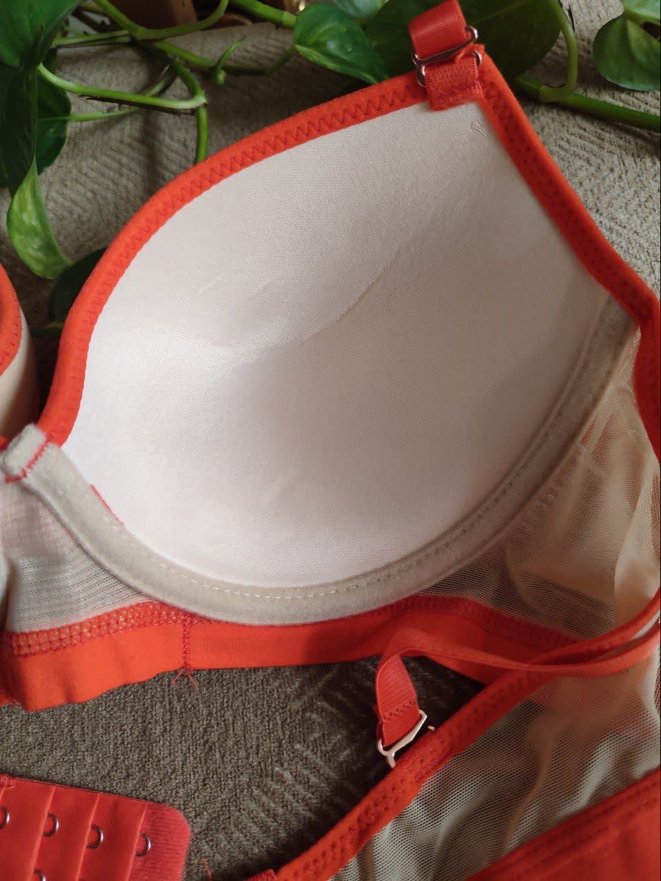 ست لباس زیر زنانه اسفنجی نواری رنگ نارنجی