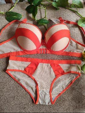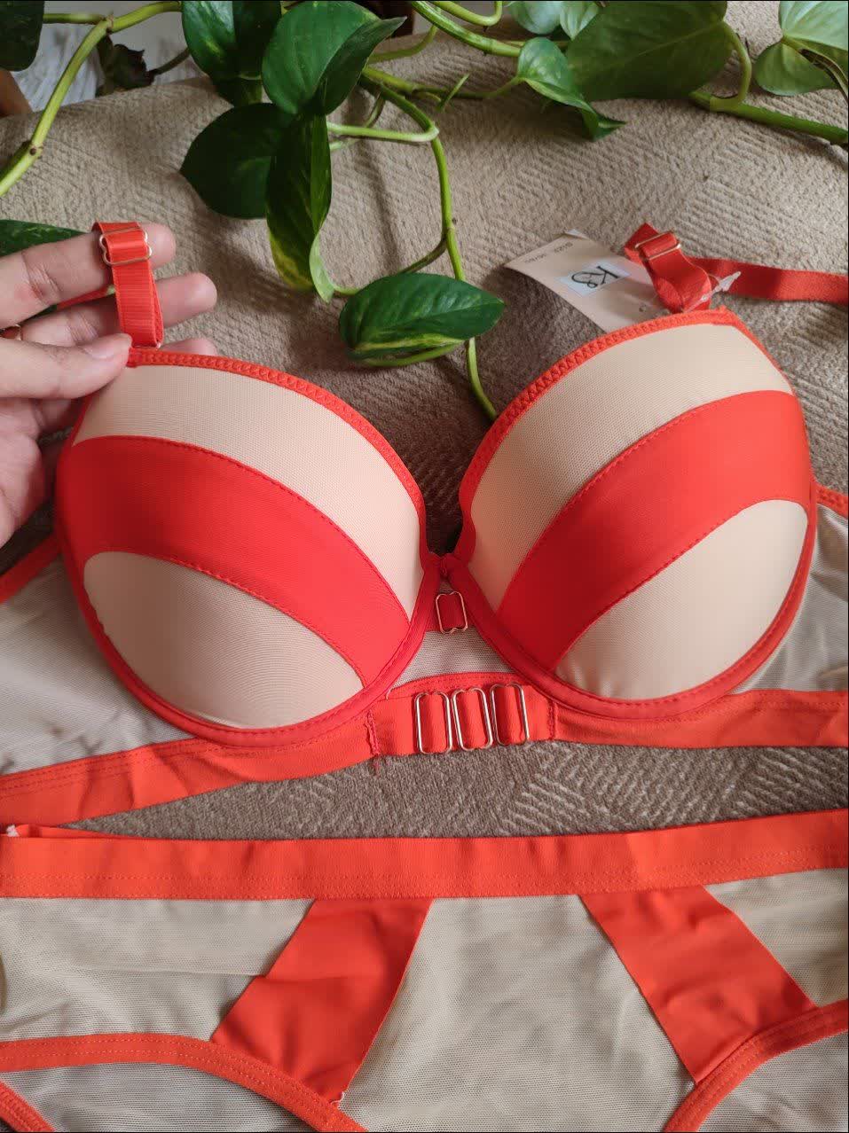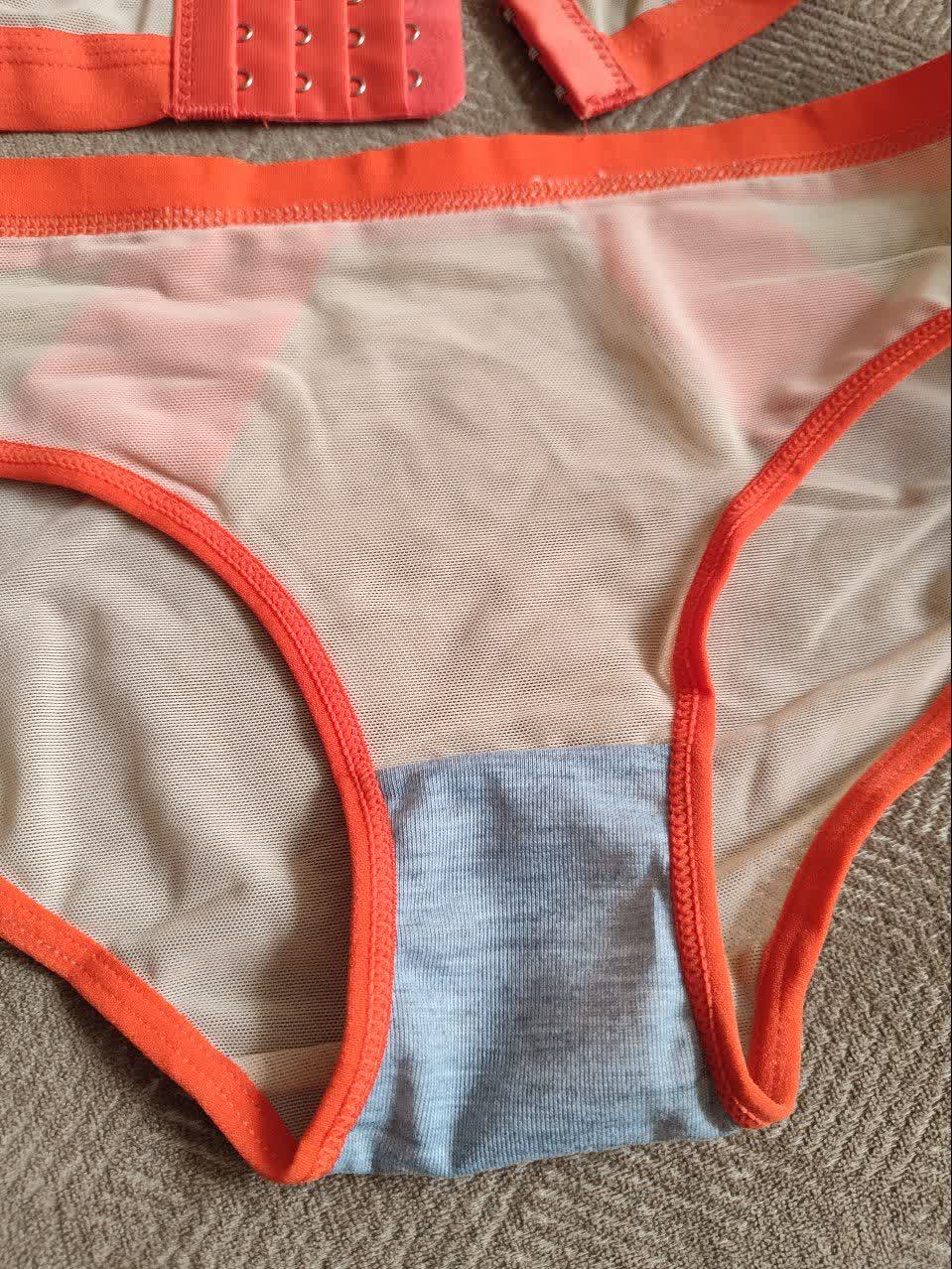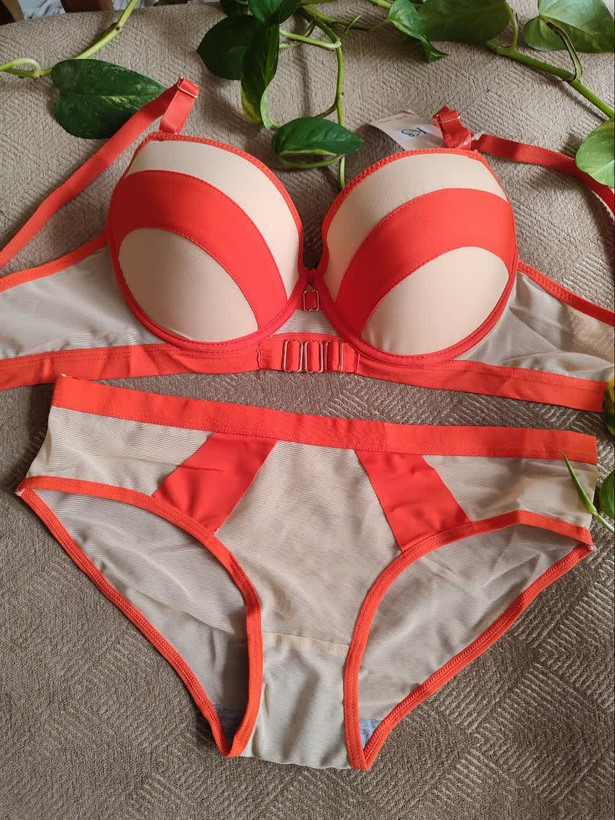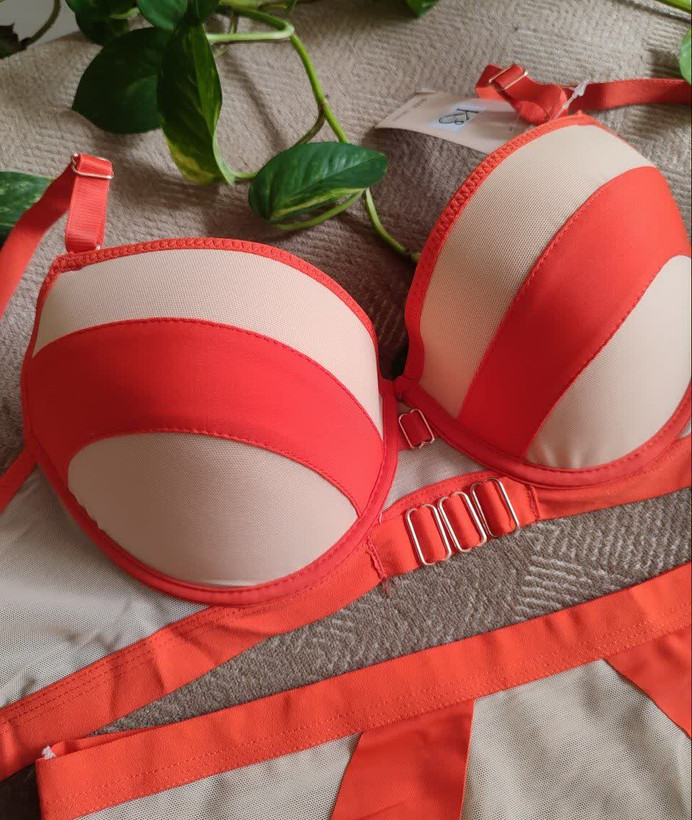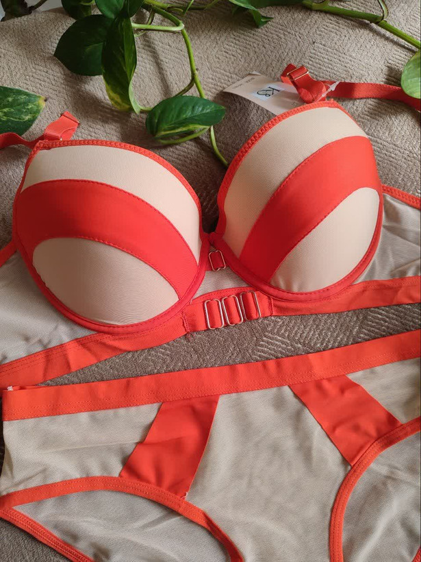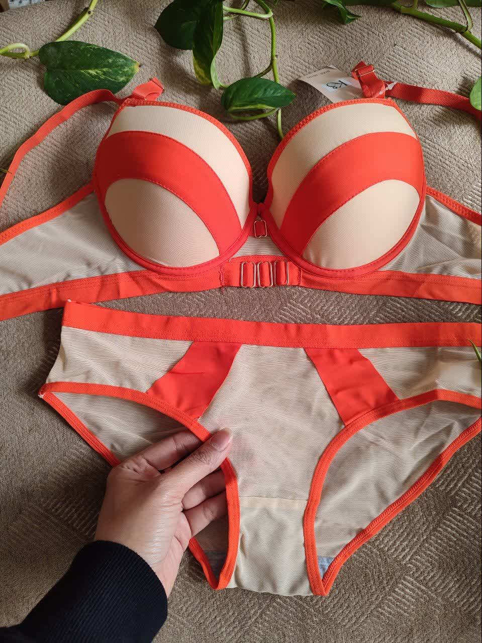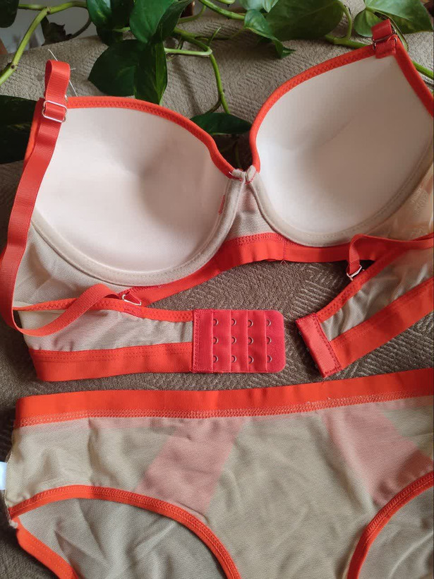 ست لباس زیر زنانه اسفنجی نواری رنگ نارنجی