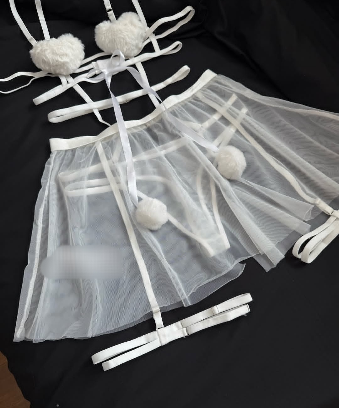 بادی فانتزی زنانه همراه دامن و ران بند طرح قلبی