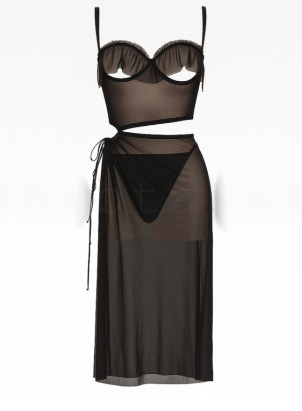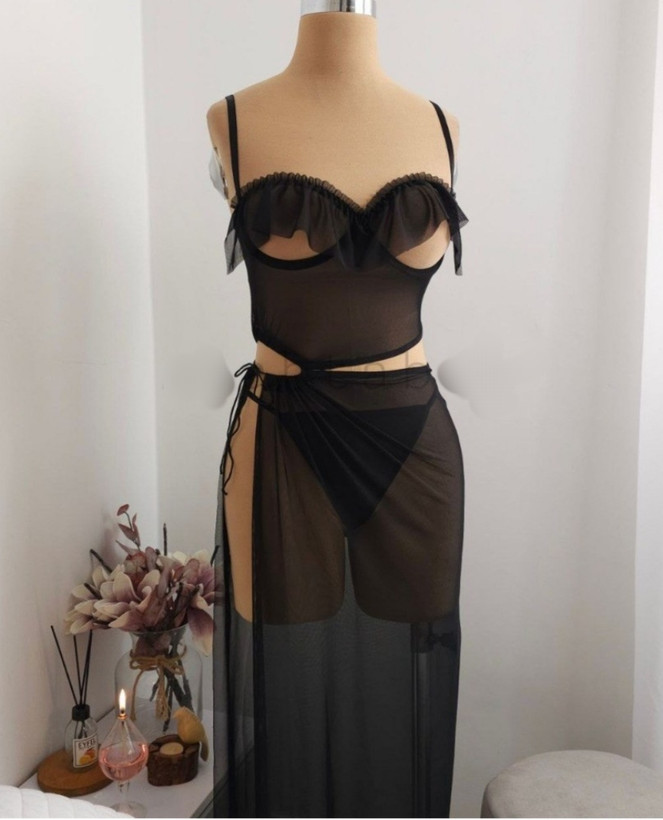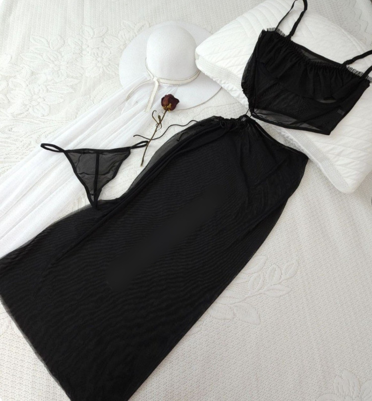 لباس خواب پیراهن حریر بلند کاپ باز رنگ مشکی
