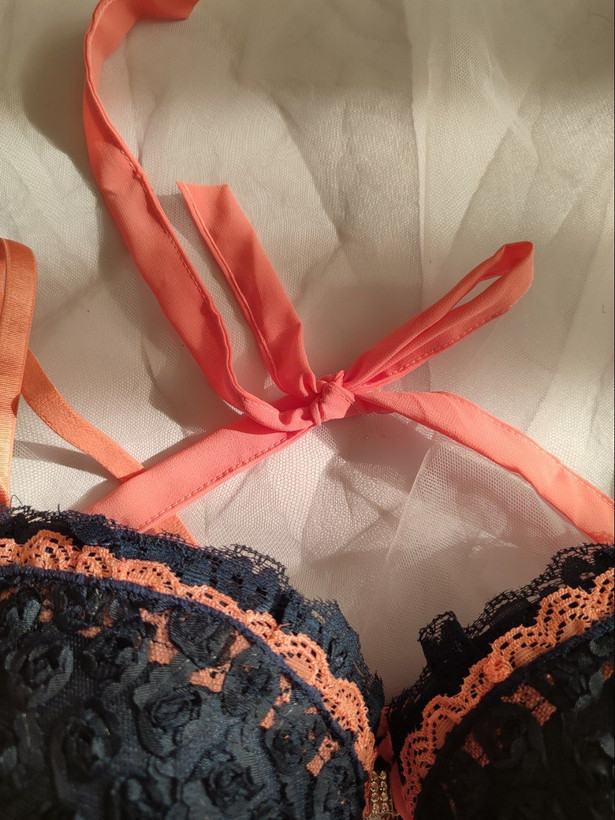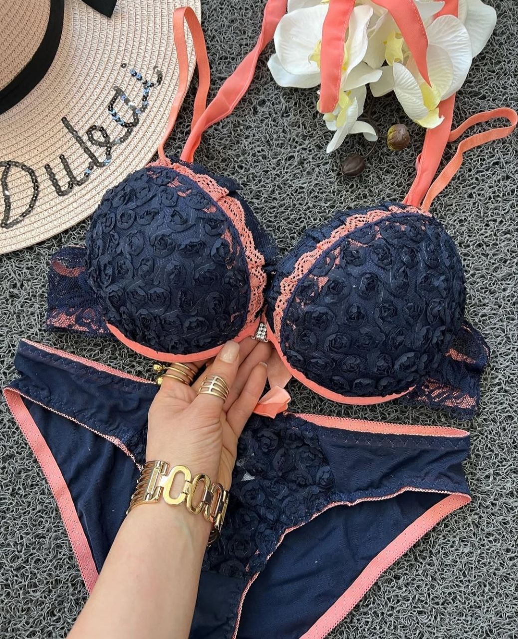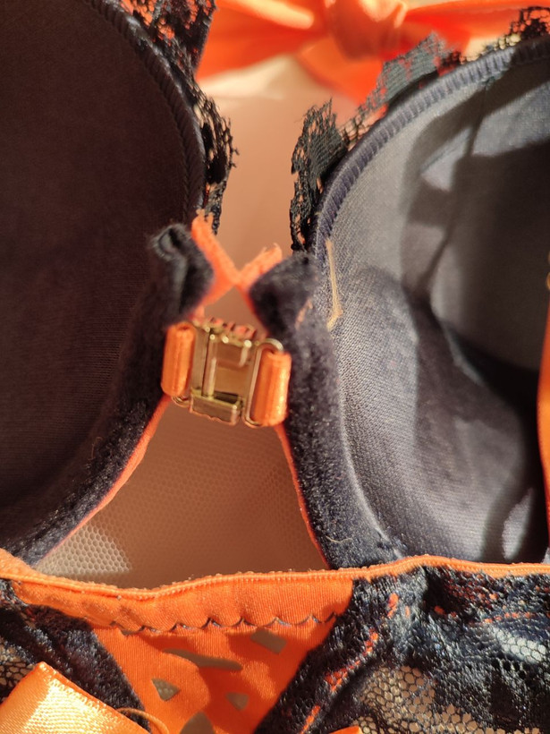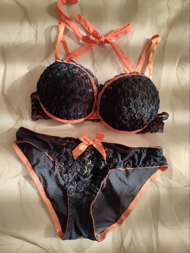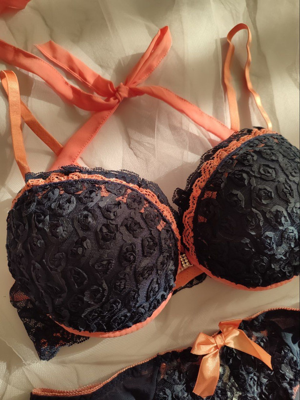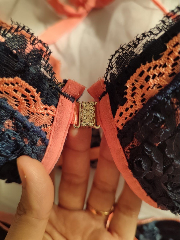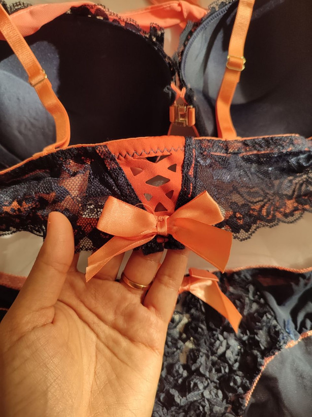 ست لباس زیر زنانه اسفنجی جلو بازشو طرح شکوفه رنگ سرمه ای
