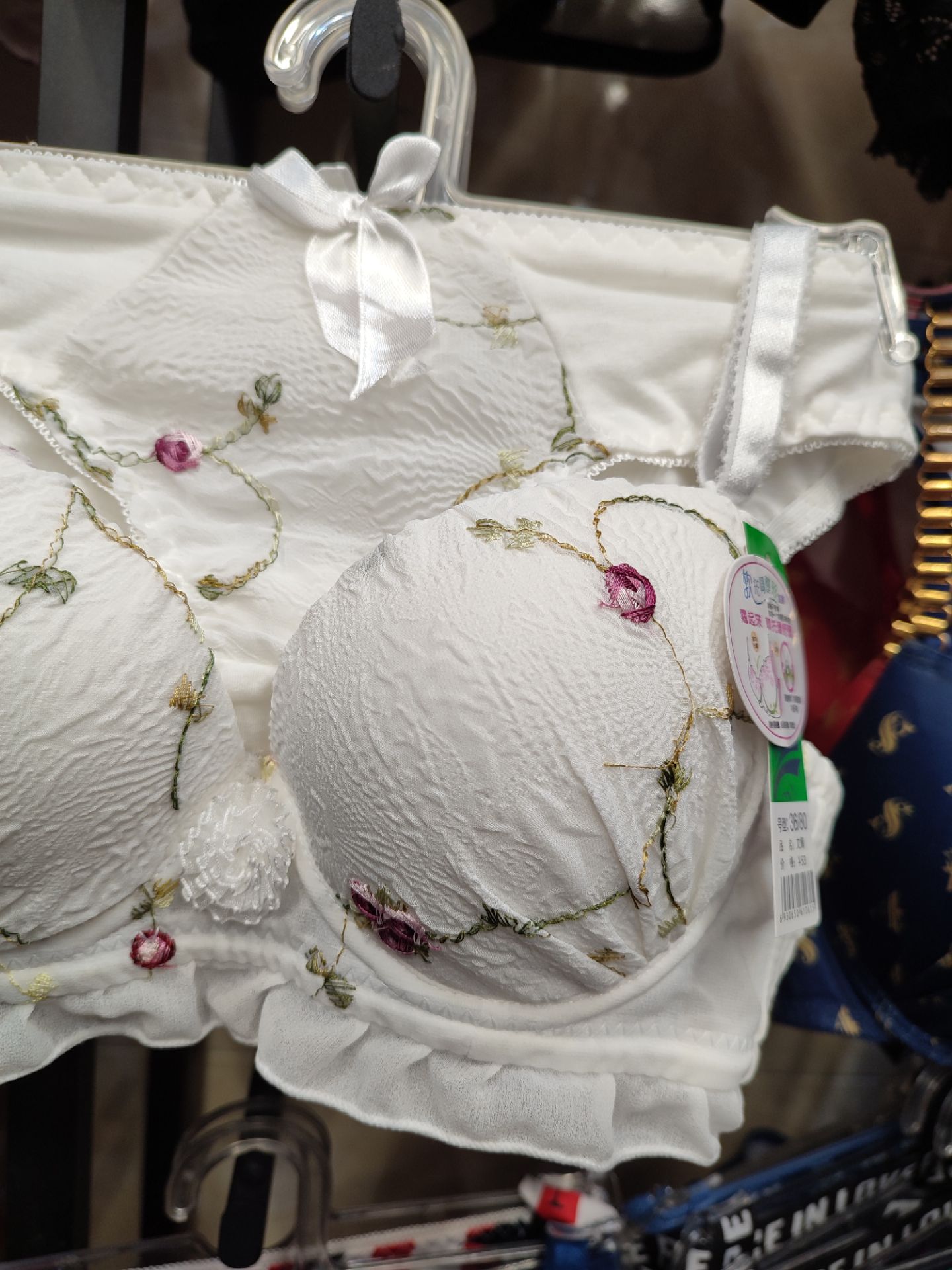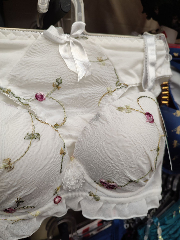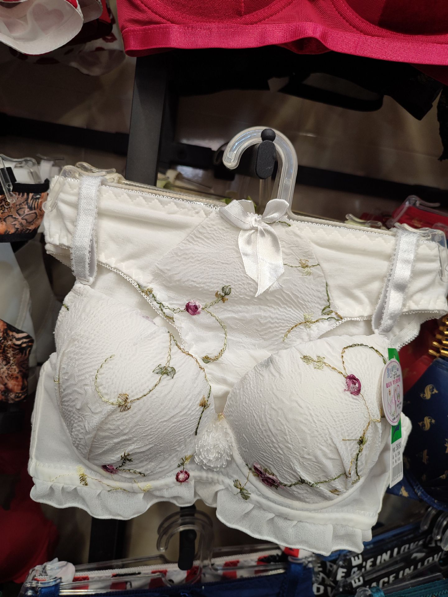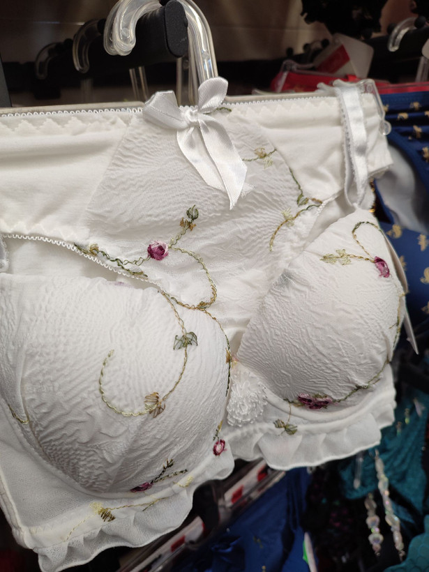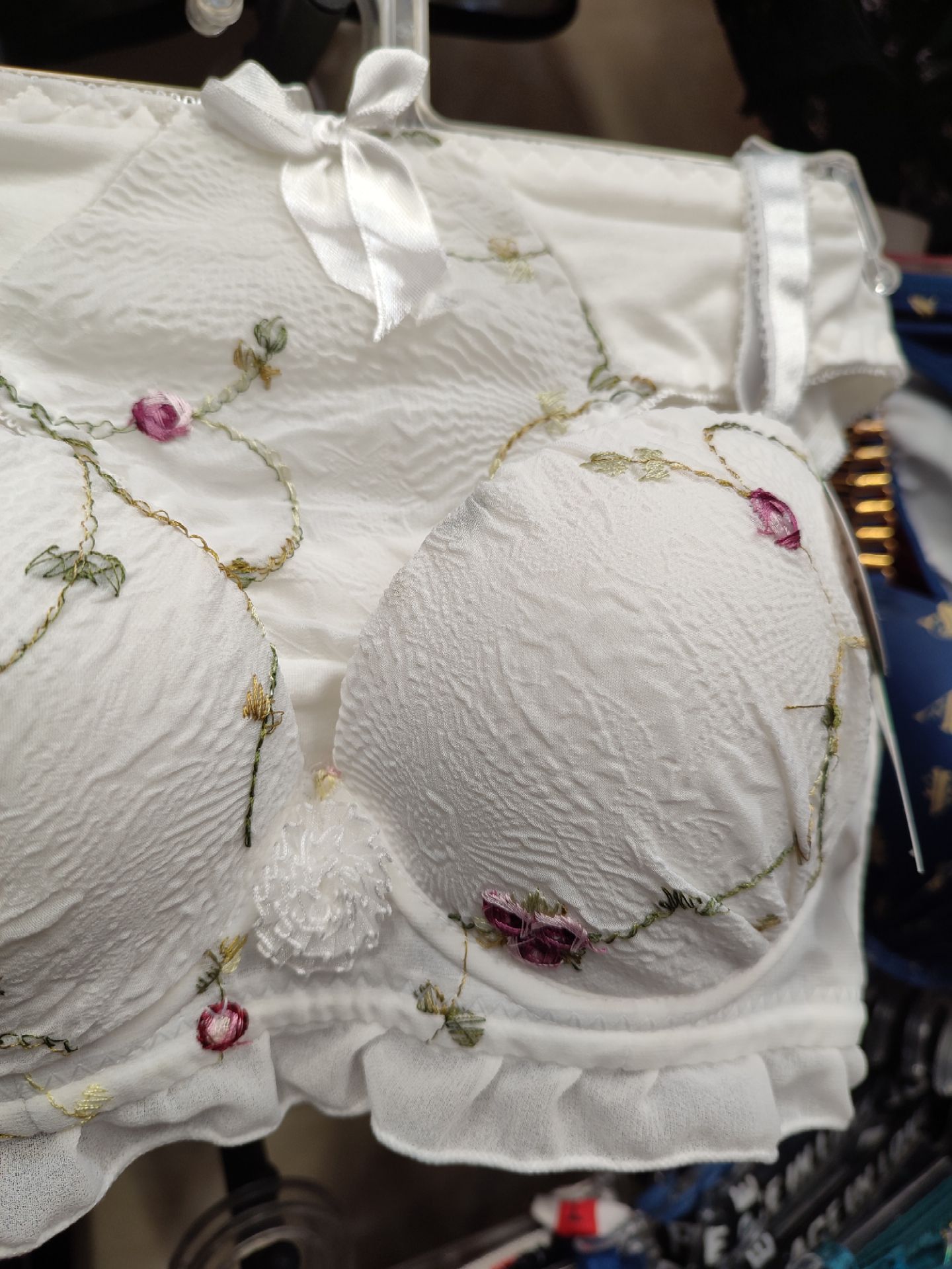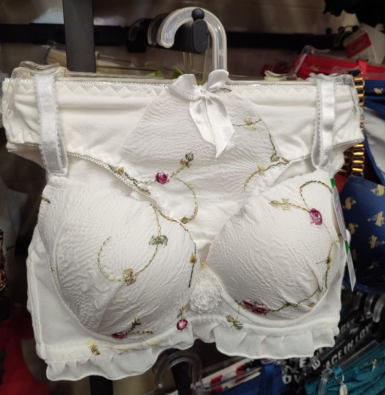 ست لباس زیر زنانه اسفنجی نخی گلدوزی رنگ سفید