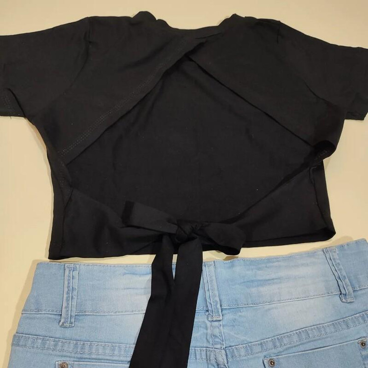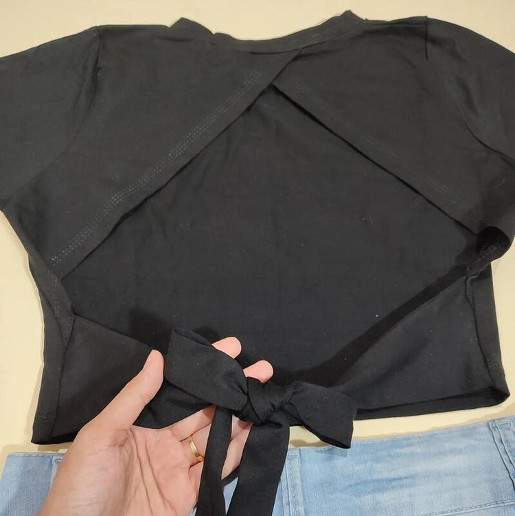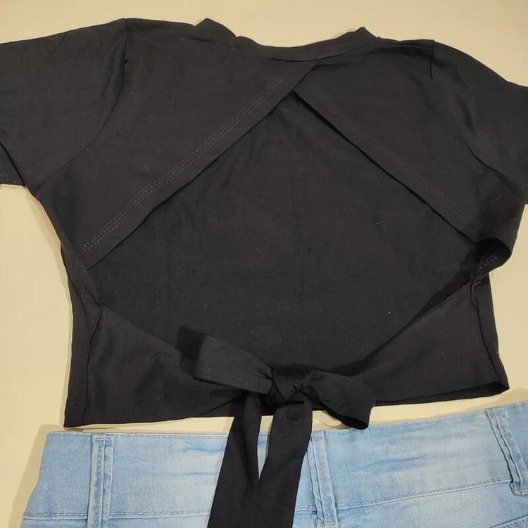 کراپ تیشرت ساریسا مدل پشت پاپیونی رنگ مشکی