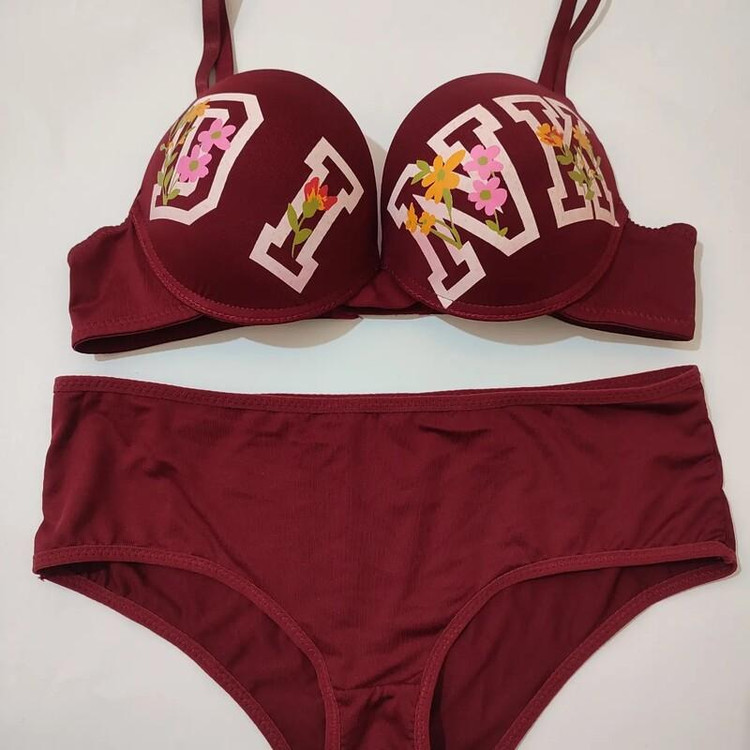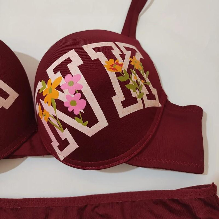 ست لباس زیر زنانه اسفنجی چاپدار DINK رنگ زرشکی