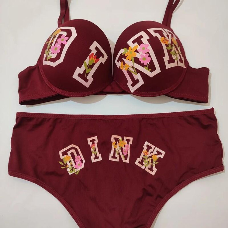 ست لباس زیر زنانه اسفنجی چاپدار DINK رنگ زرشکی