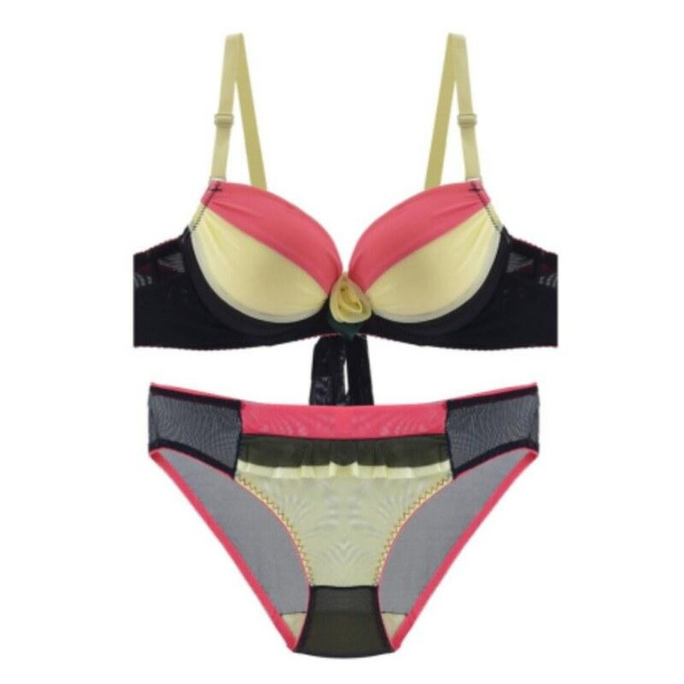 ست لباس زیر زنانه اسفنجی حریر گلدار رنگ مشکی