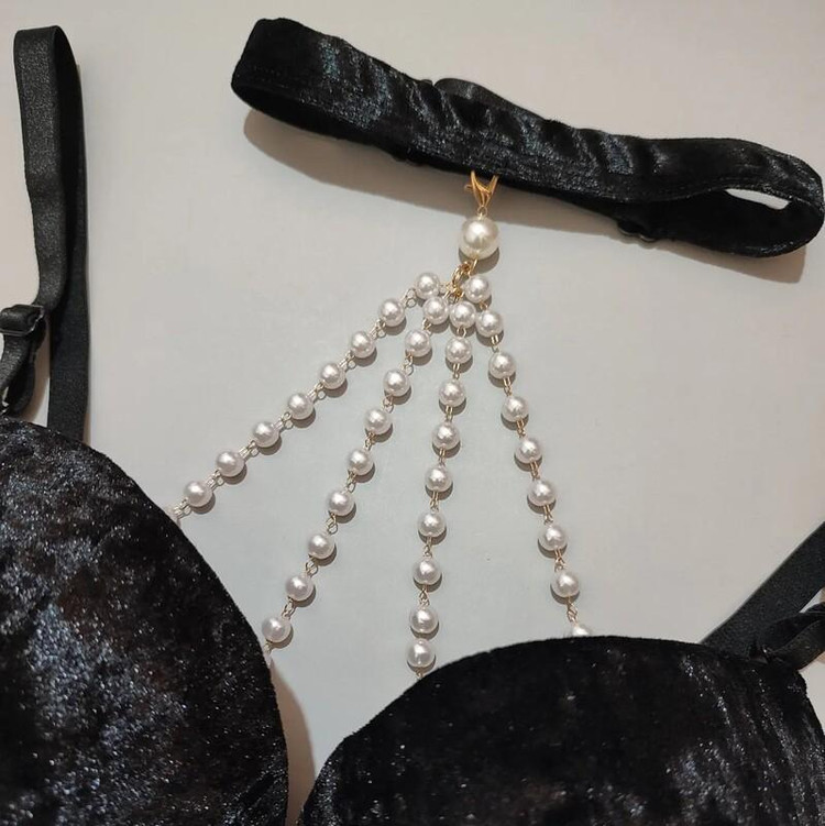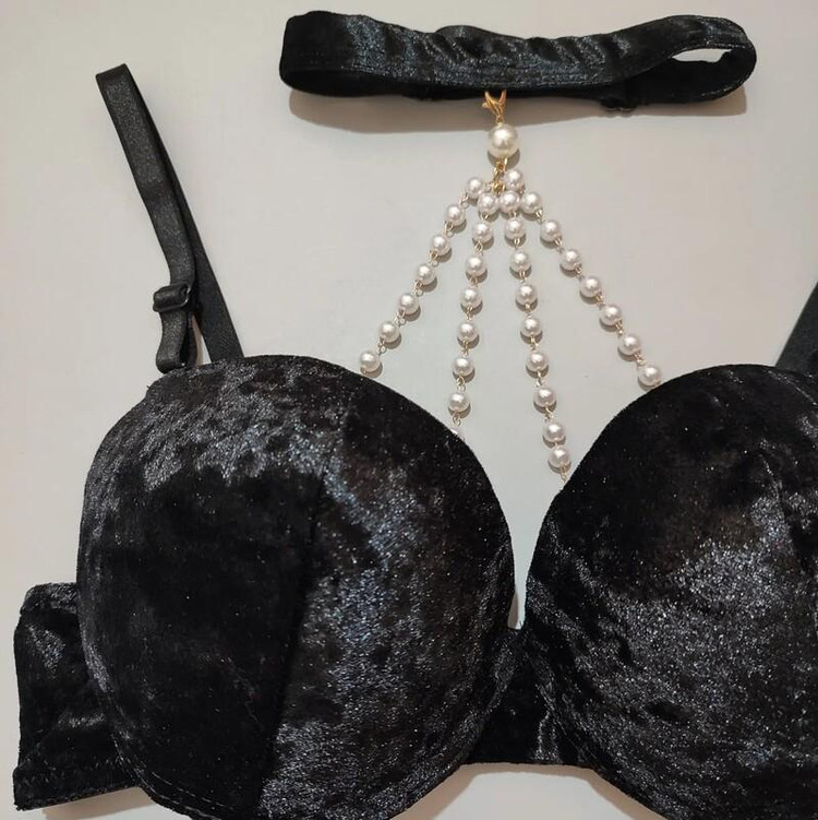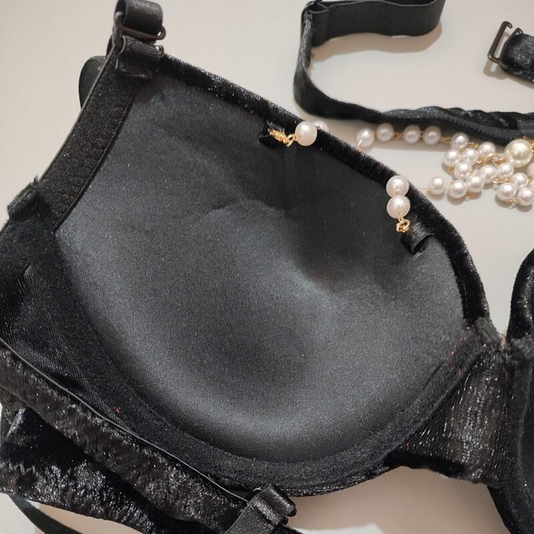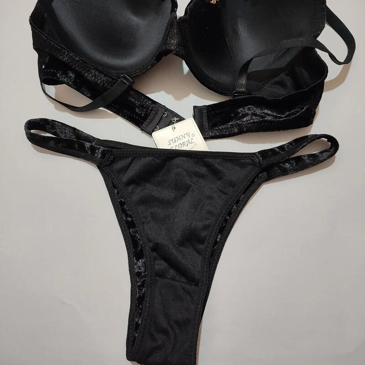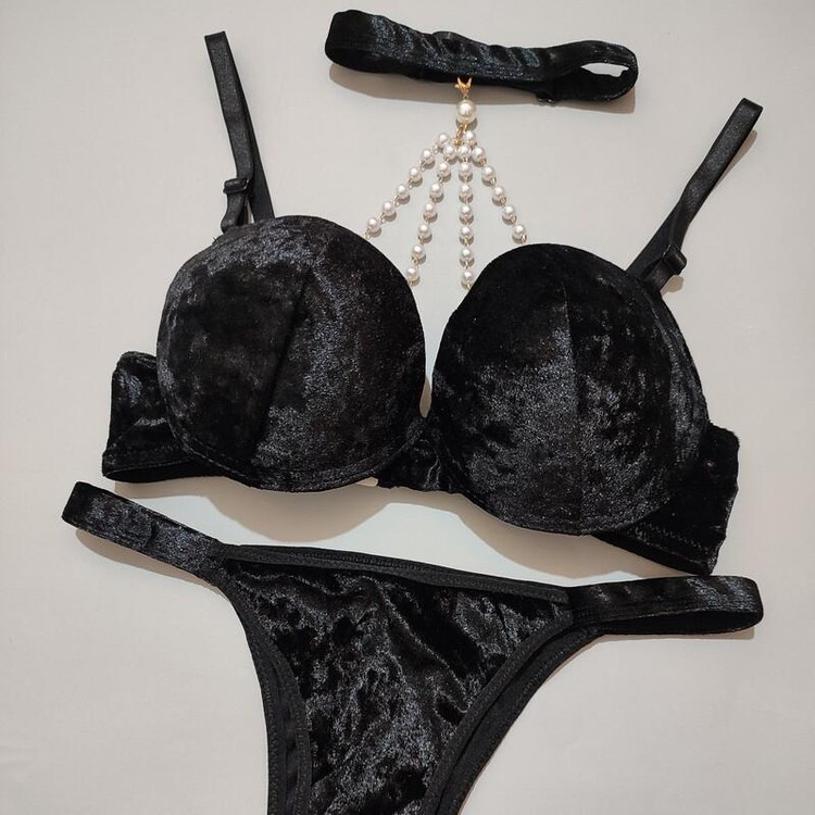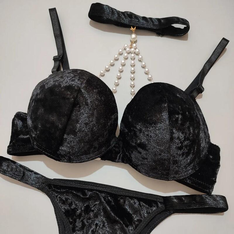 ست لباس زیر زنانه اسفنجی مدل مخمل مرواریدی رنگ مشکی
