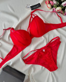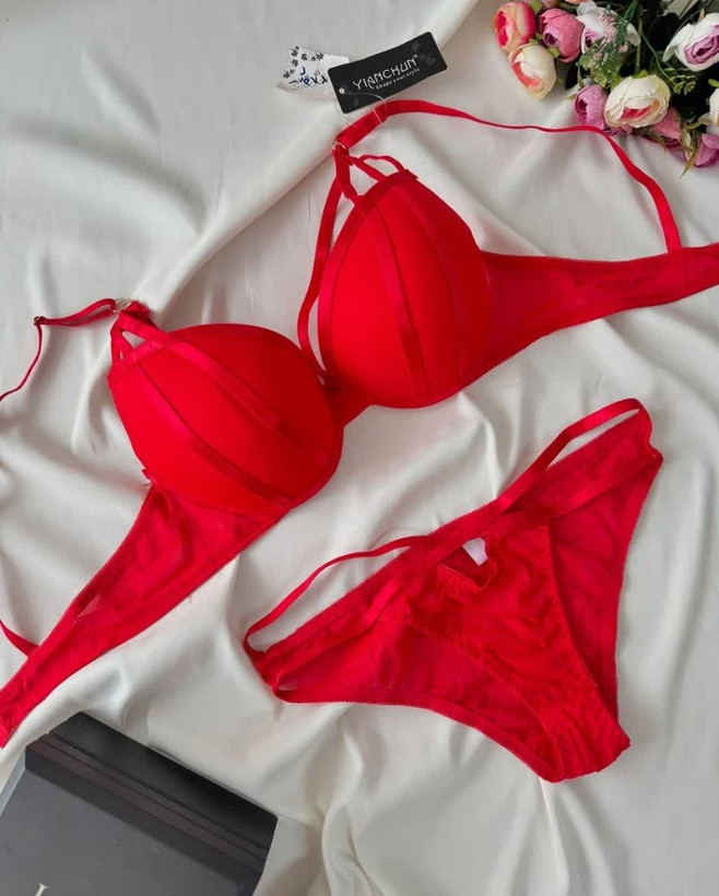 ست لباس زیر زنانه اسفنجی هارنس دار رنگ قرمز