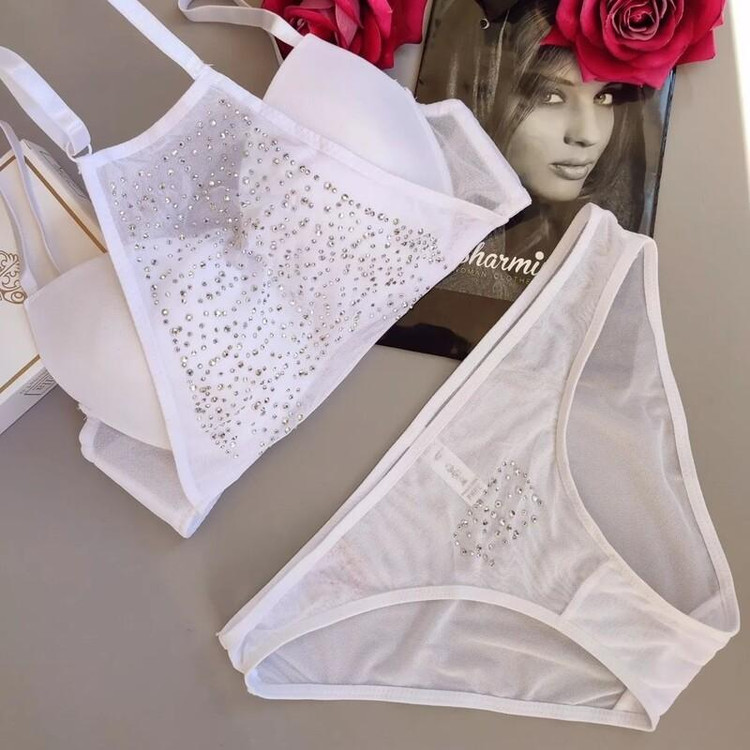 ست پشت گردنی نگین دار کیفیت عالی و تن پوش فوقالعاده جذاب 🔥 ایستایی عالی و فرم کاپ کاملاً گرد داخل فاق شورت آستر نخی رنگ بندی 🌈 سفید_مشکی سایز بندی 👈80_85_90