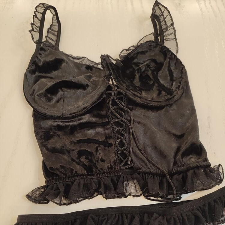 ست فنردار فانتزی کراپ و شورت مخمل