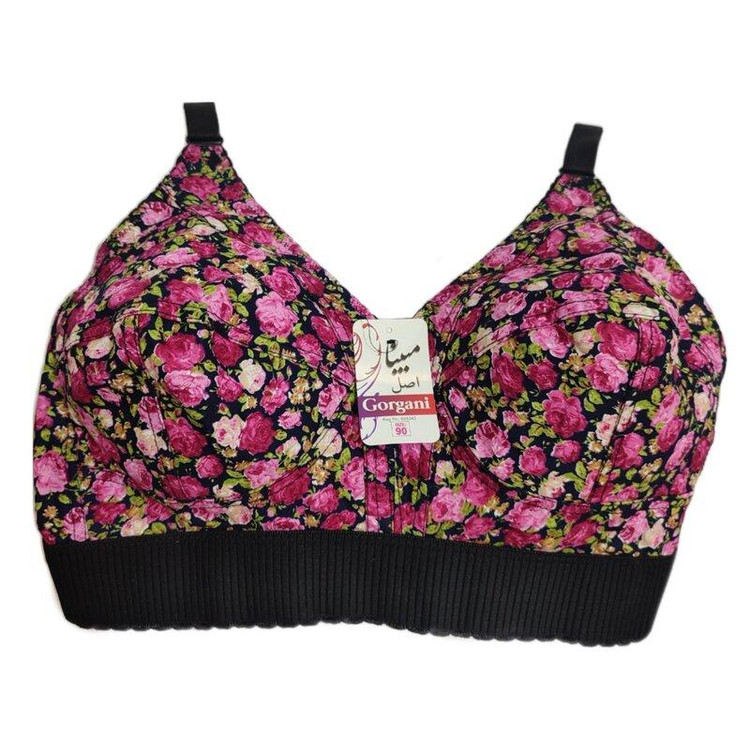 سوتین زنانه گلدار کش پهن مبینا مشکی