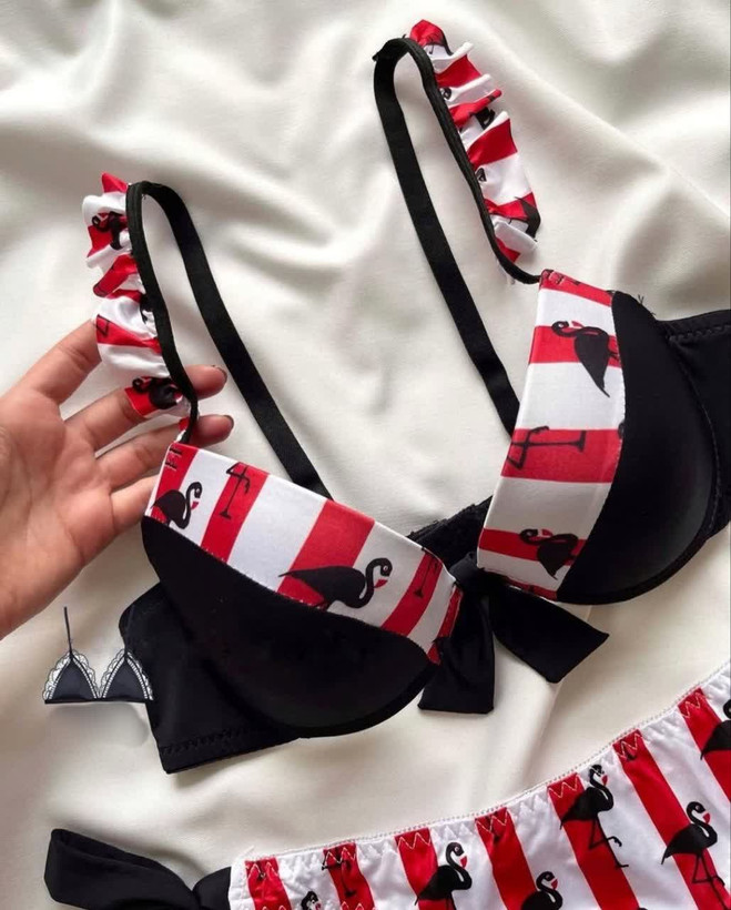 ست لباس زیر زنانه اسفنجی گره ای طرح فلامینگو