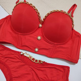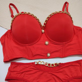 ست زنانه اسفنجی دکلته پایه بلند کارتیر رنگ قرمز
