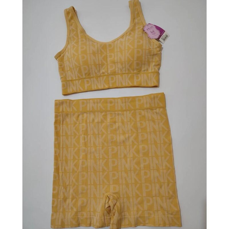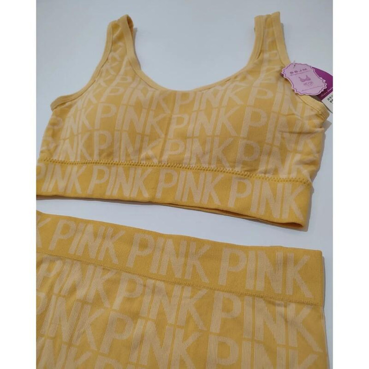 ست نیمتنه و شورتک ورزشی پینک رنگ لیمویی
