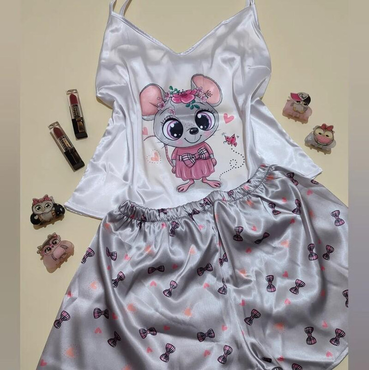 تاپ شورت زنانه ساتن بهار طرح عروسکی