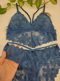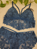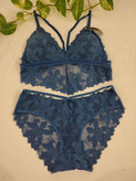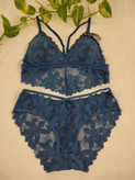 ست نیمتنه و شورت دانتل هارنس دار رنگ سرمه ای