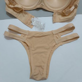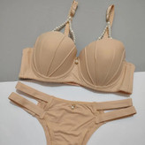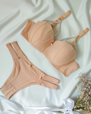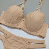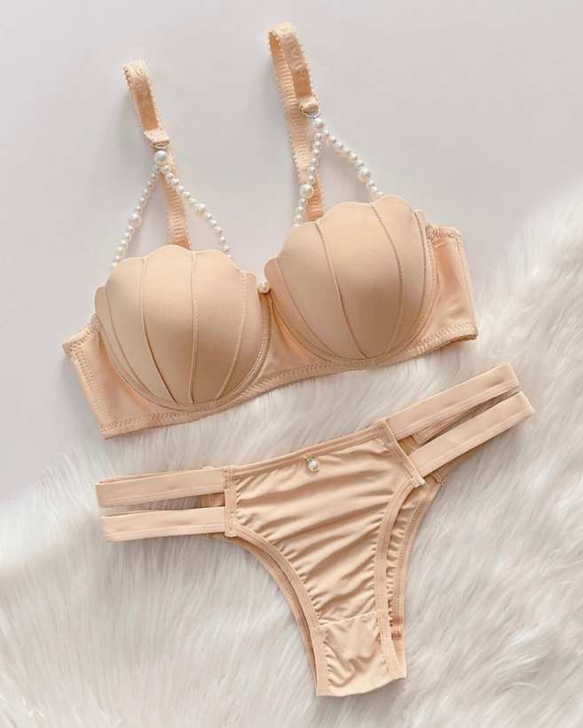 ست لباس زیر زنانه اسفنجی مدل صدفی مرواریدی رنگ کرم