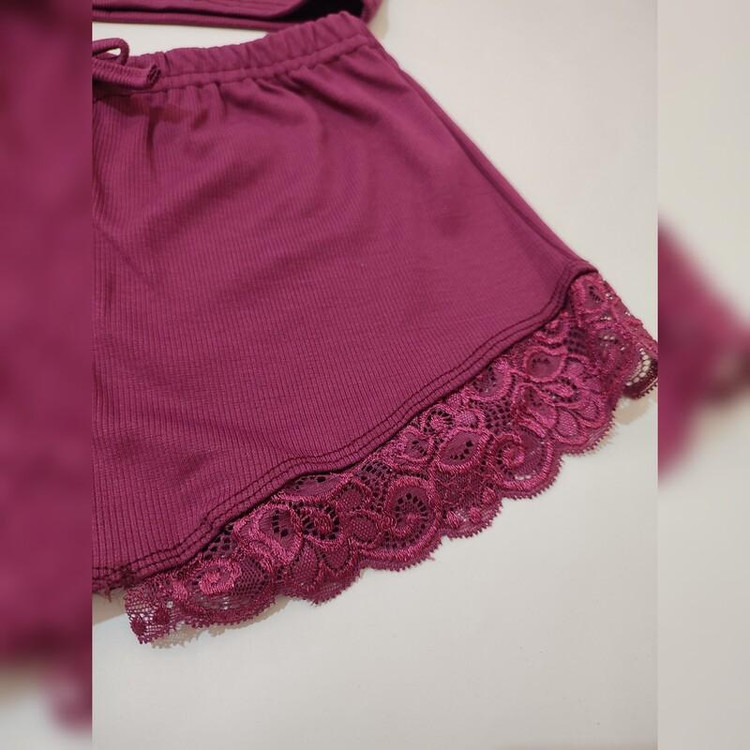 تاپ شورت کبریتی لب گیپوری بادمجانی