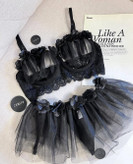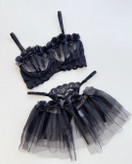 لباس خواب سه تکه فانتزی کاپ باز دانتل همراه دامن توری رنگ مشکی