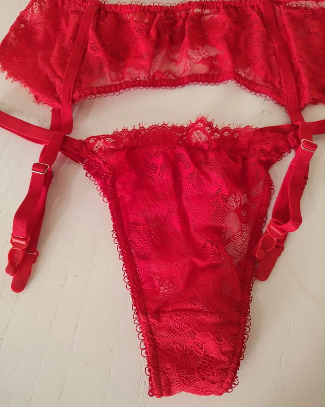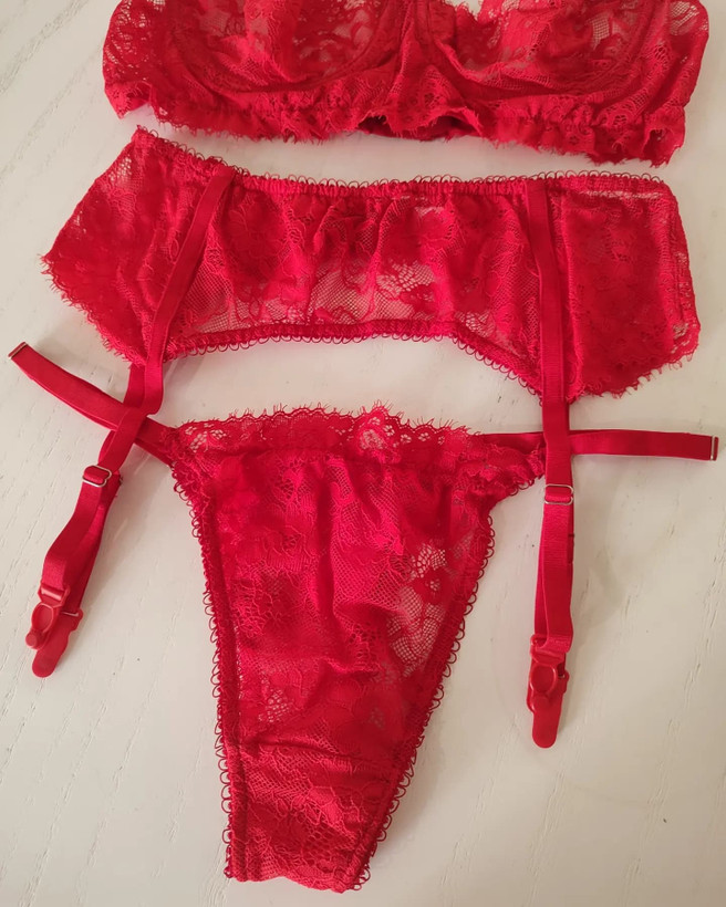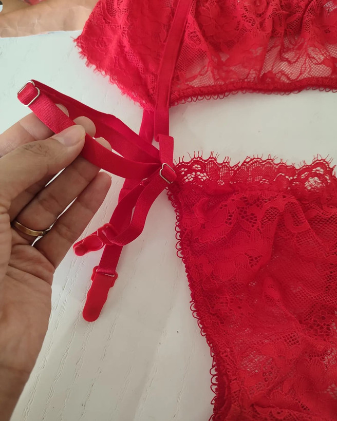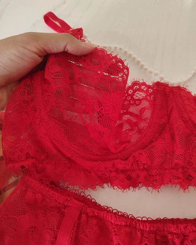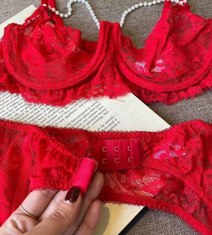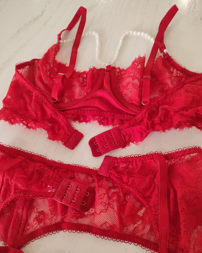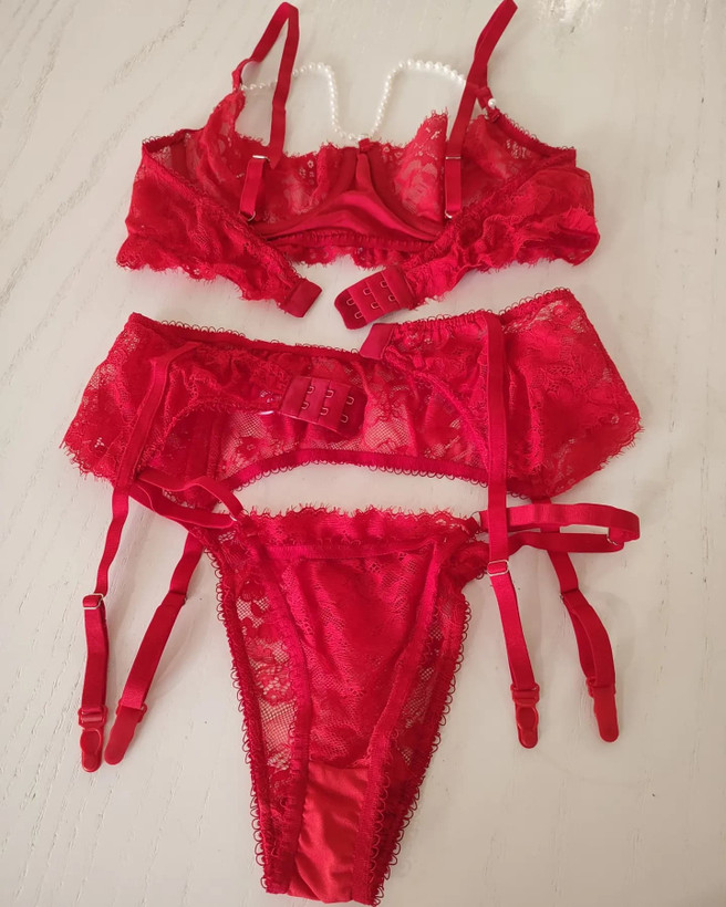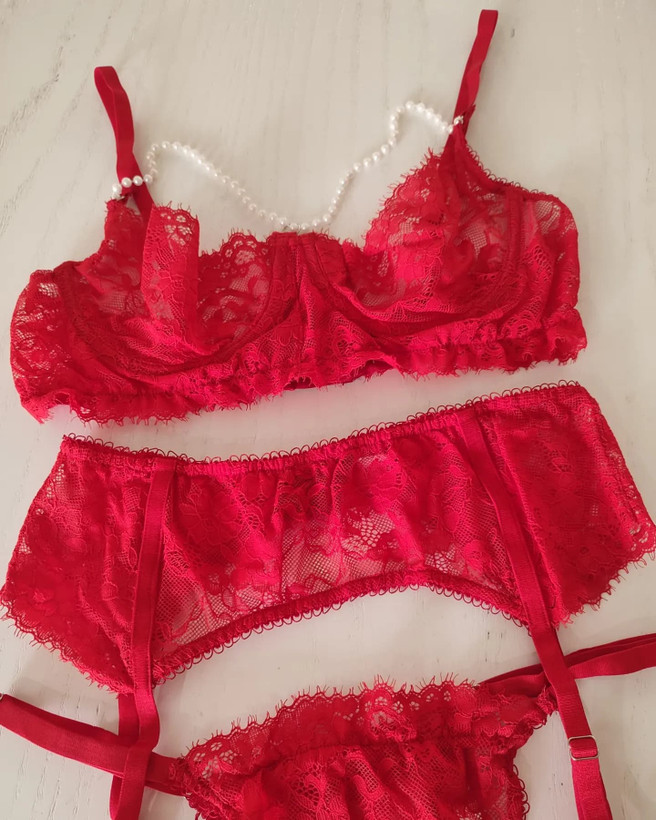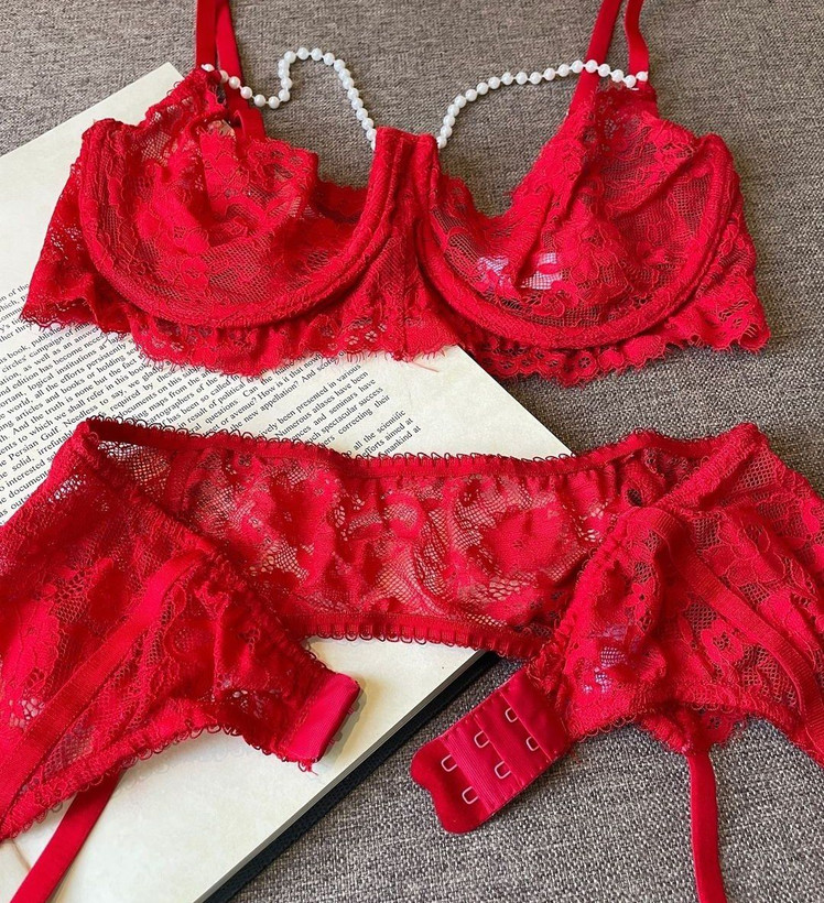 ست فانتزی زنانه 3تکه مدل دانتل مرواریدی رنگ قرمز