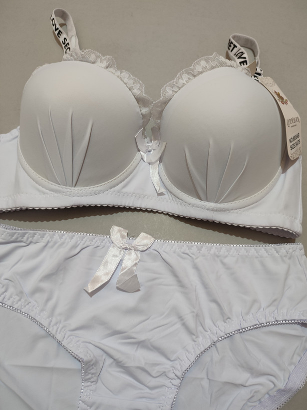 ست لباس زیر زنانه اسفنجی مدل ساده لب توری رنگ سفید